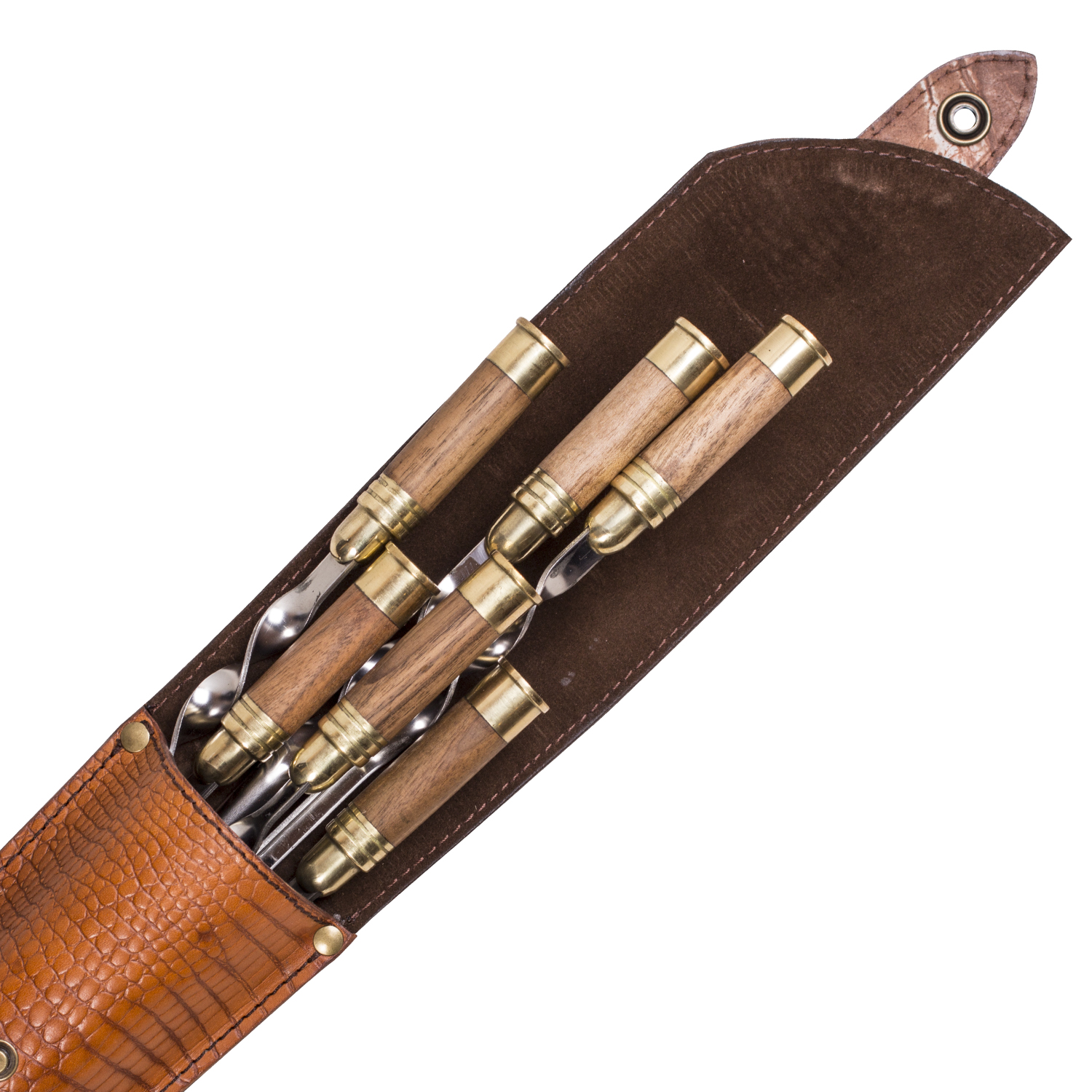 Шампур из нержавеющей стали с рукоятью из ореха и латуни в форме патрона (общая длина шампура — 67 см: длина рукояти — 9 см; длина полотна — 58 см) | 6 шт. |