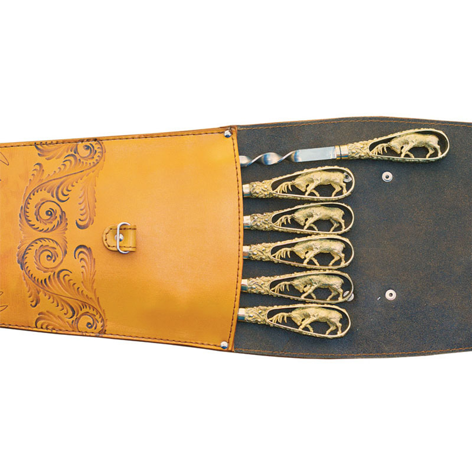 ----Шампура подарочные «Олень» 6шт. в колчане из натуральной кожи (роспись), арт.372ОЛ6