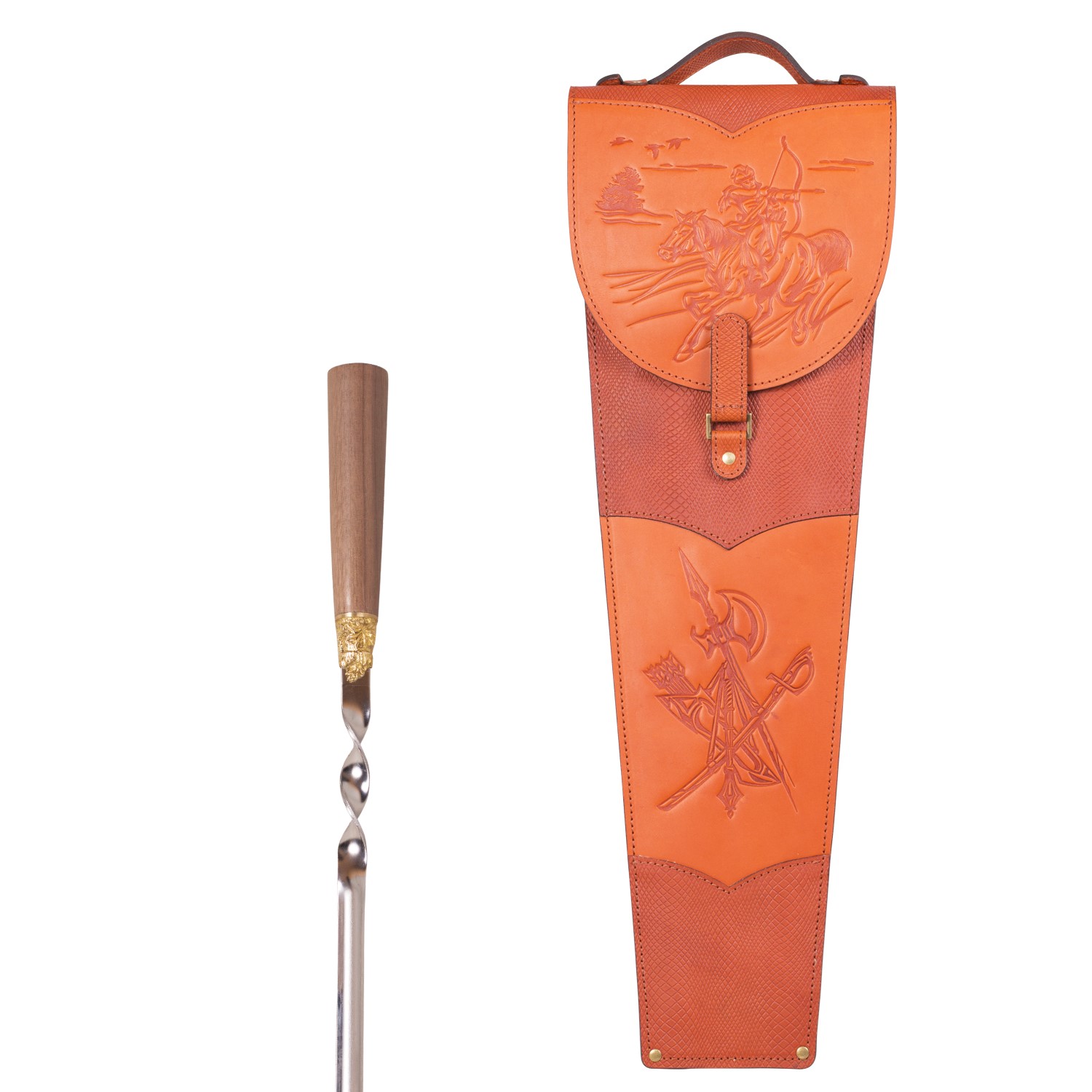 Шампура подарочные 6шт. в колчане из натуральной кожи (охотник, тиснение), арт.317КК6-РТ