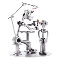 Его причудливые создания из шурупов и болтов, изображающие людей на работе и на отдыхе, узнаются из прочих по приметным очкам, которые они все носят.
