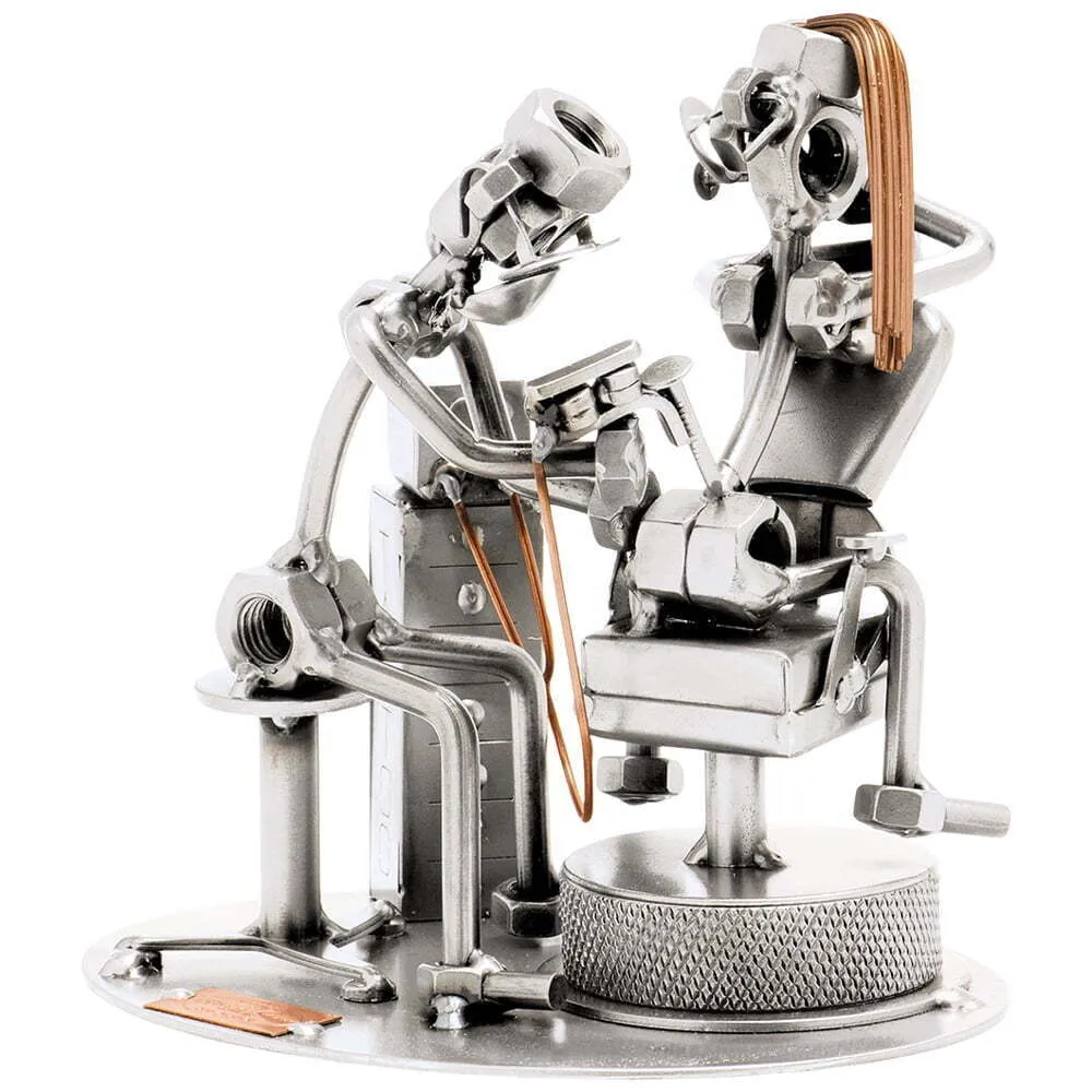 Его причудливые создания из шурупов и болтов, изображающие людей на работе и на отдыхе, узнаются из прочих по приметным очкам, которые они все носят.