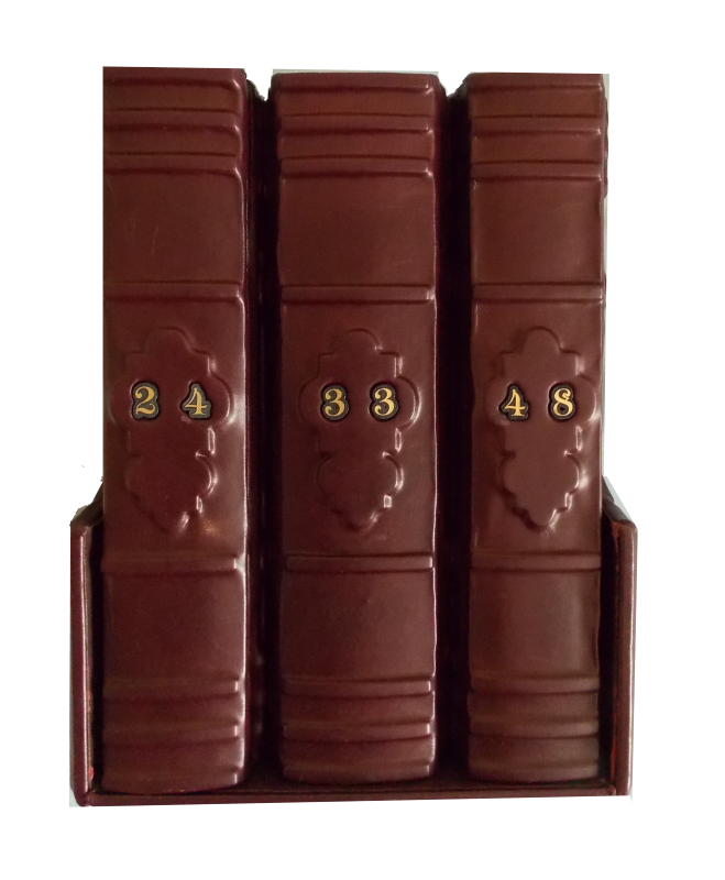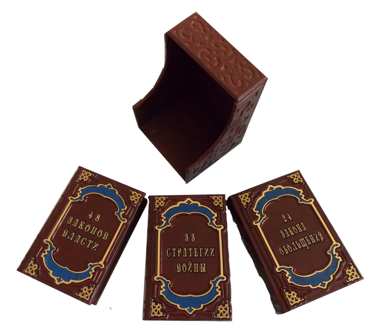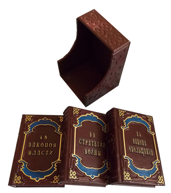 Книга представлена в подарочном кожаном футляре, вдохновленном дизайном книг.