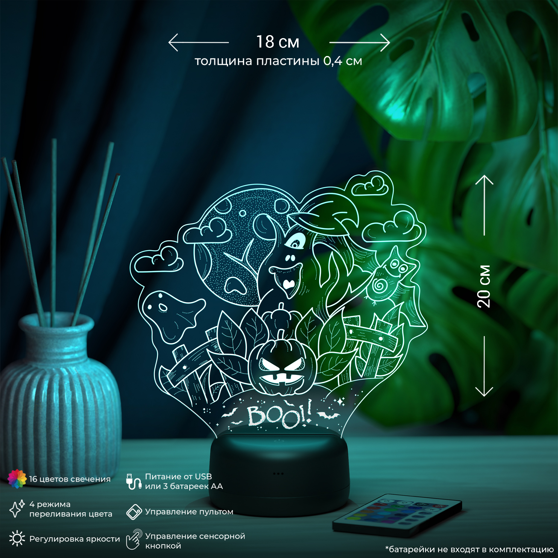 Цвета свечения: 16 цветов и 4 режима плавной смены цвета