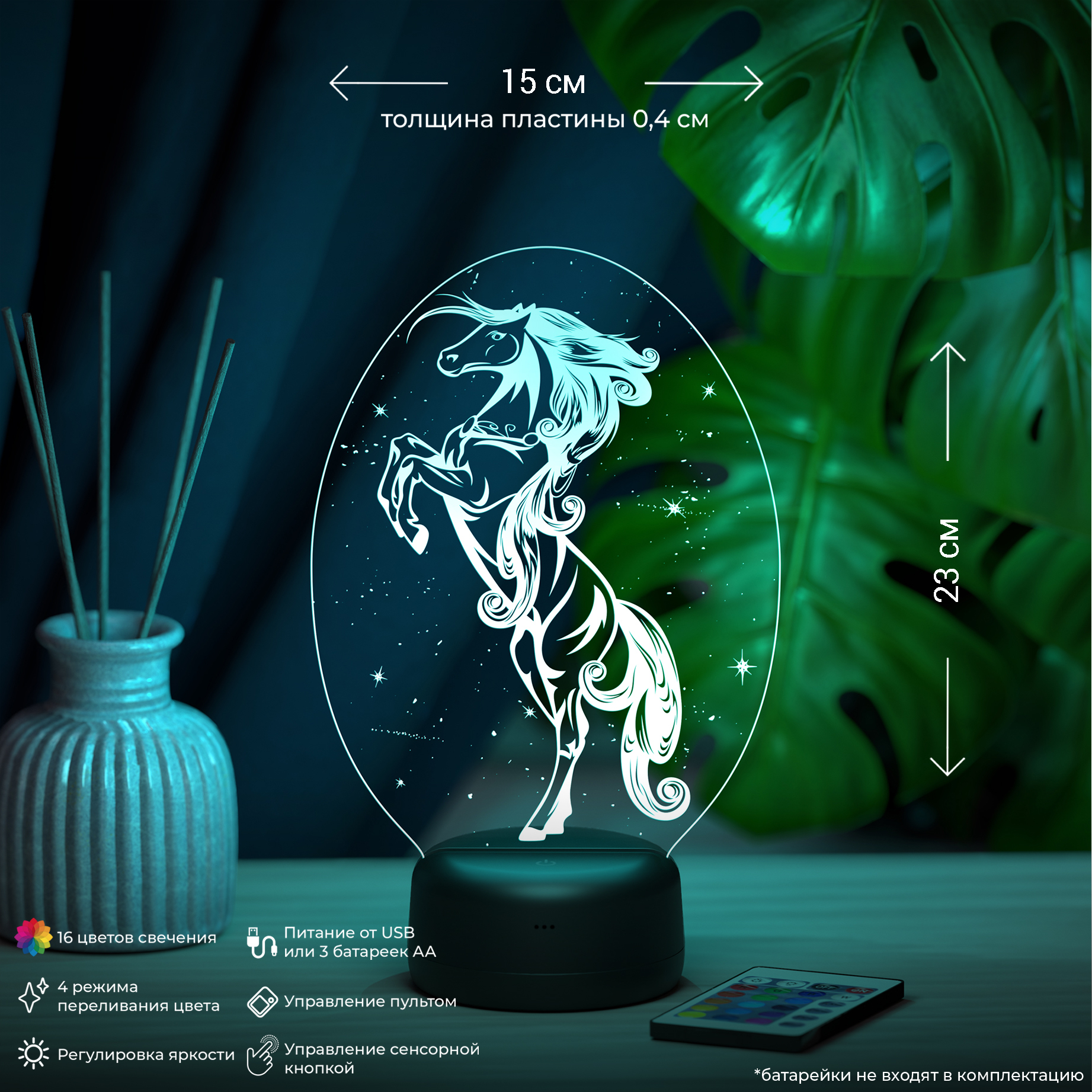Цвета свечения: 16 цветов и 4 режима плавной смены цвета