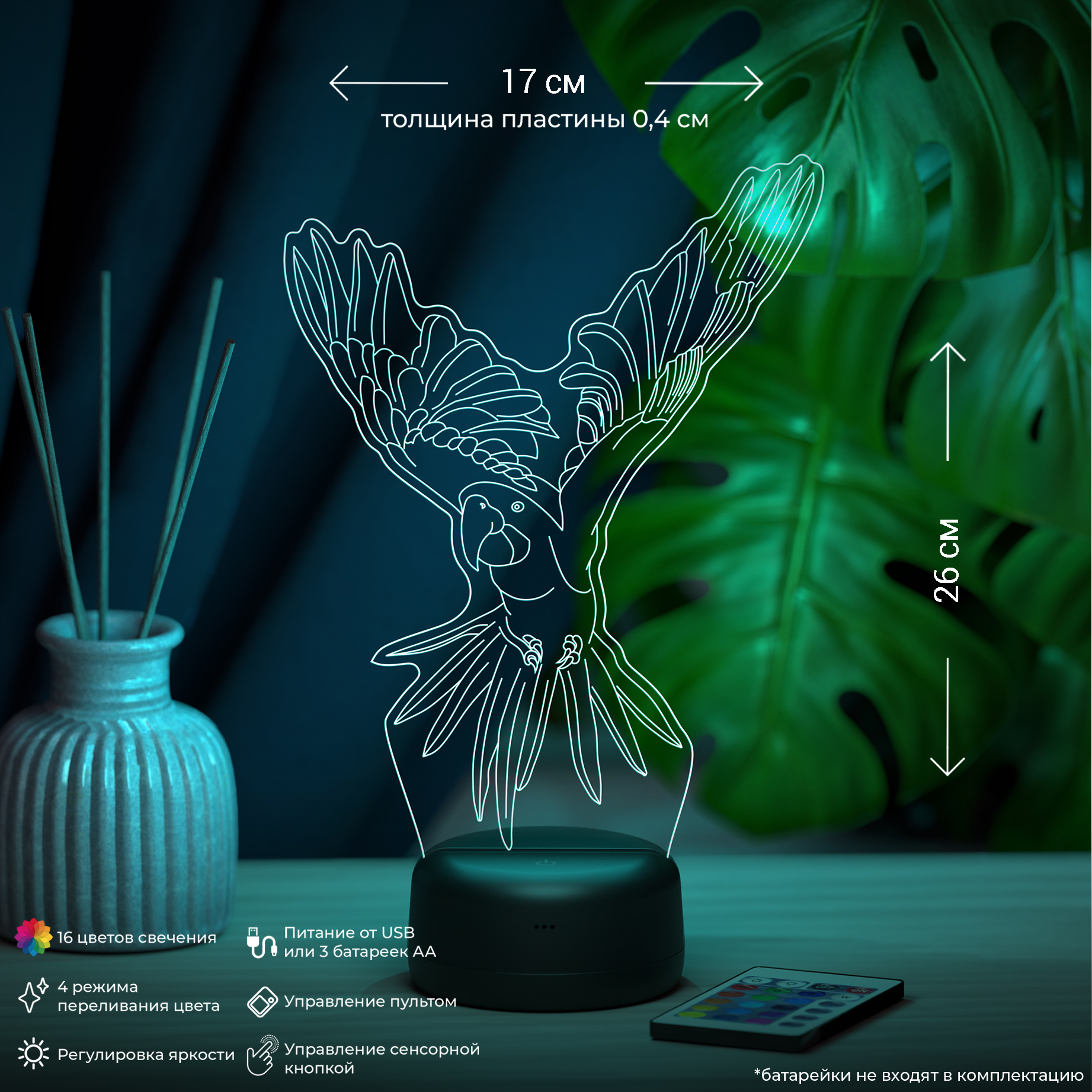 Цвета свечения: 16 цветов и 4 режима плавной смены цвета
