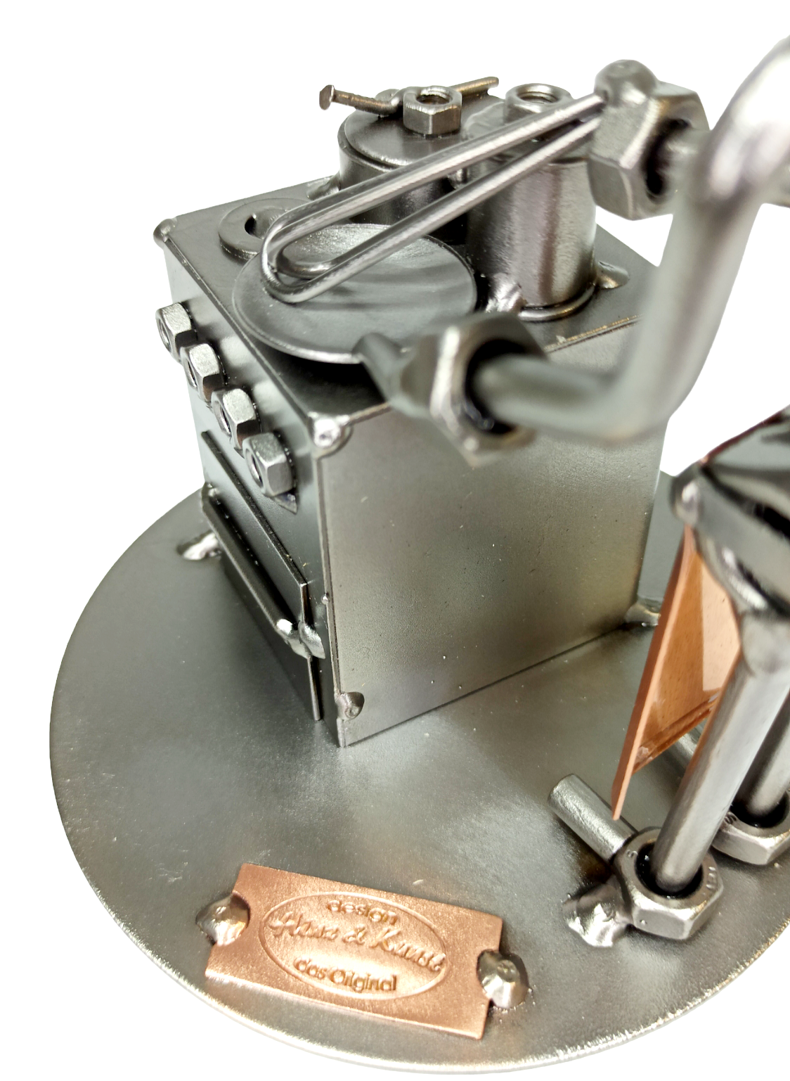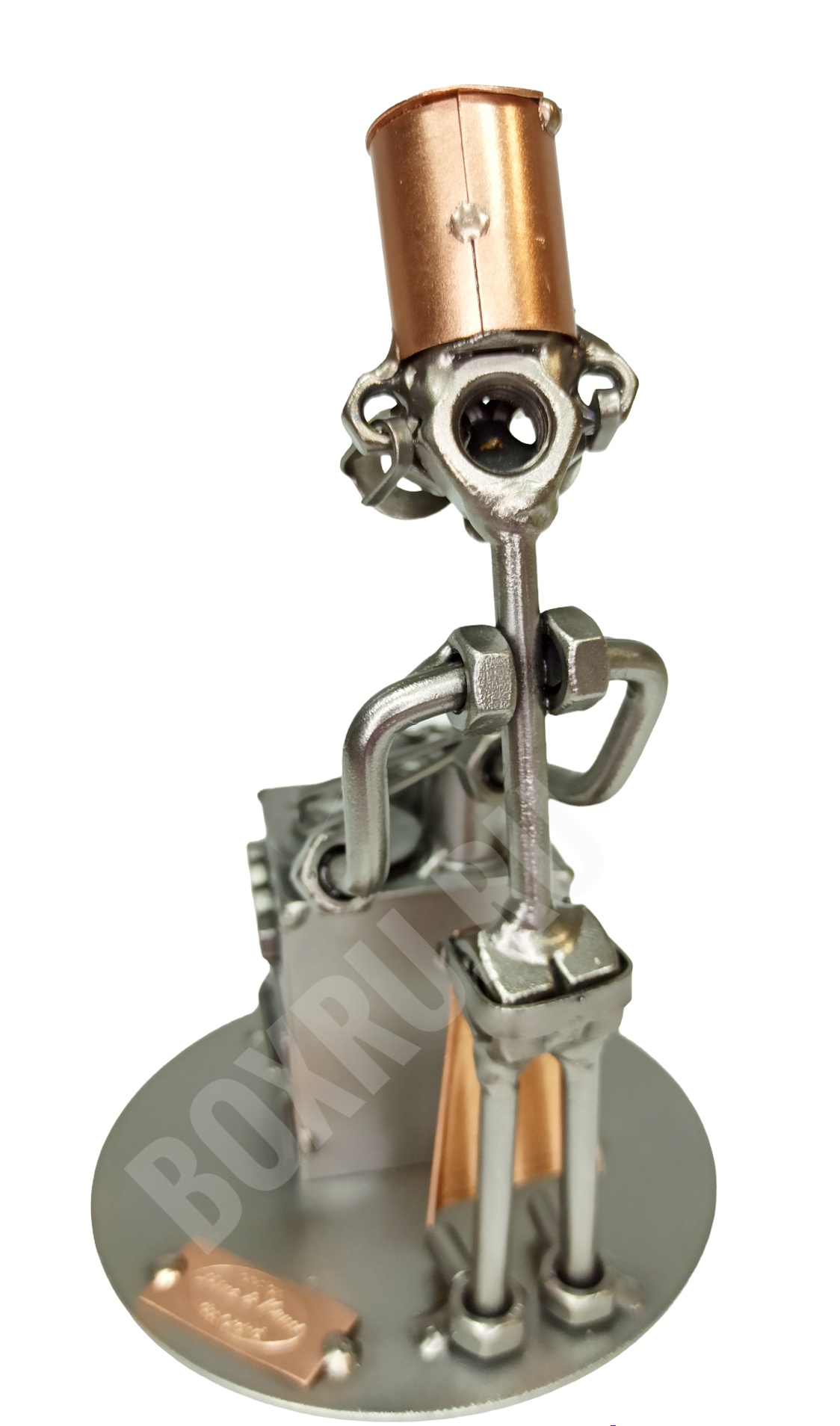 Его причудливые творения из стали и меди, гаек и болтов, среди которых немало функциональных вещиц, мало кого могут оставить равнодушным и станут потрясающим подарком людям с чувством юмора и прекрасным вкусом.