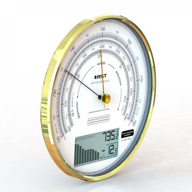 Уникальность барометра заключается в использовании точных цифровых датчиков давления и электронно-механического метода передачи их на классический круглый циферблат со стрелкой.