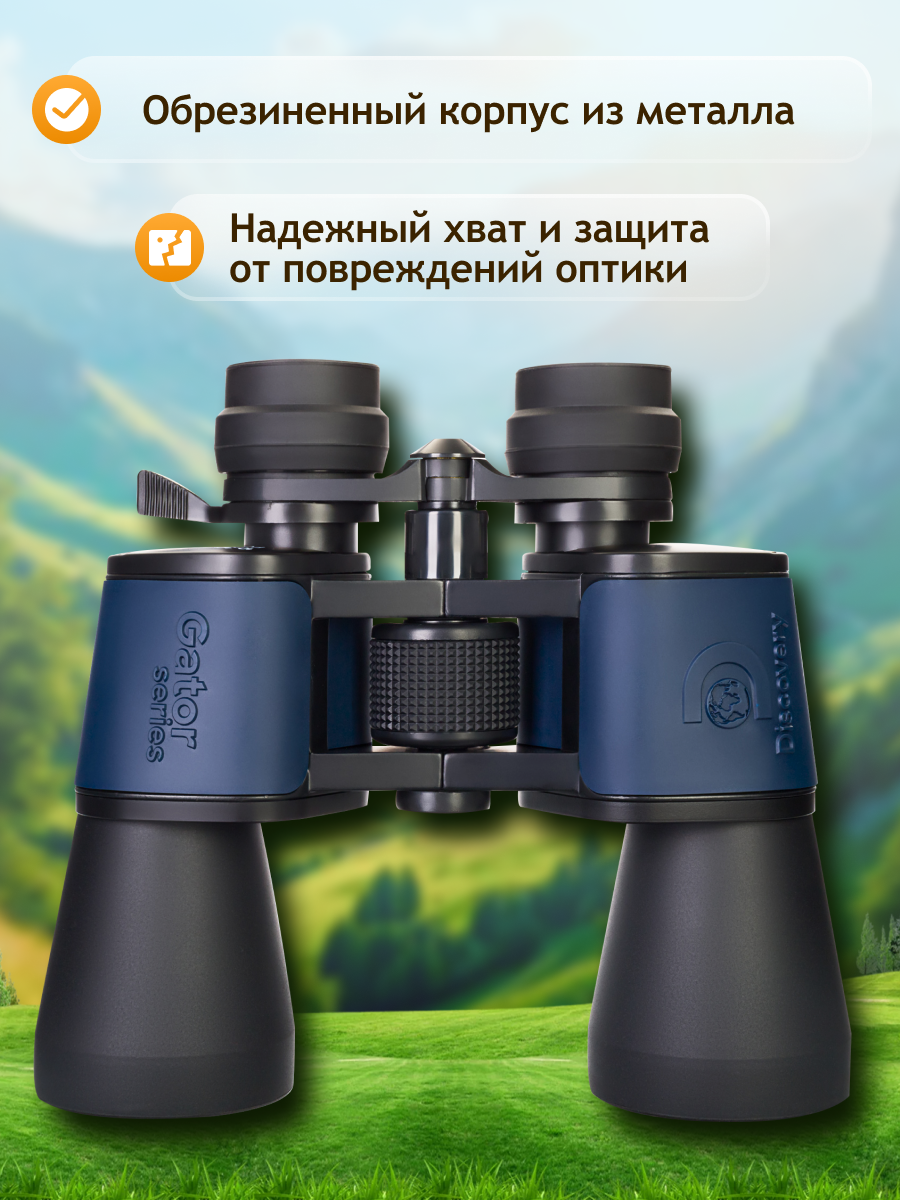 Бинокль Levenhuk Discovery New Gator 10–30x50 пригодится и на охоте, и в походе, и даже на прогулке по лесу, ведь его увеличение можно изменять. Необходимо лучше рассмотреть далекое строение на другом берегу реки? Тут поможет 30-кратное приближение – получится увидеть мельчайшие детали объекта. Высоко в небе летит птичий клин? Сокращение увеличения до 10х обеспечит обзор, комфортный для наблюдений за движущимися объектами. Все эти возможности доступны в бинокле Levenhuk Discovery New Gator 10–30x50.