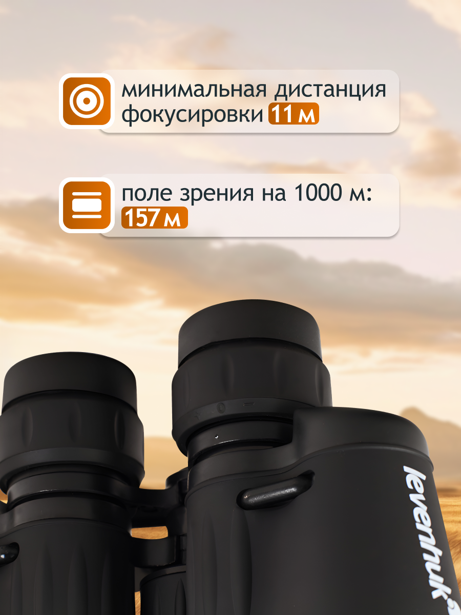 • Широкоугольный бинокль с полем зрения 157 м на дистанции 1000 м