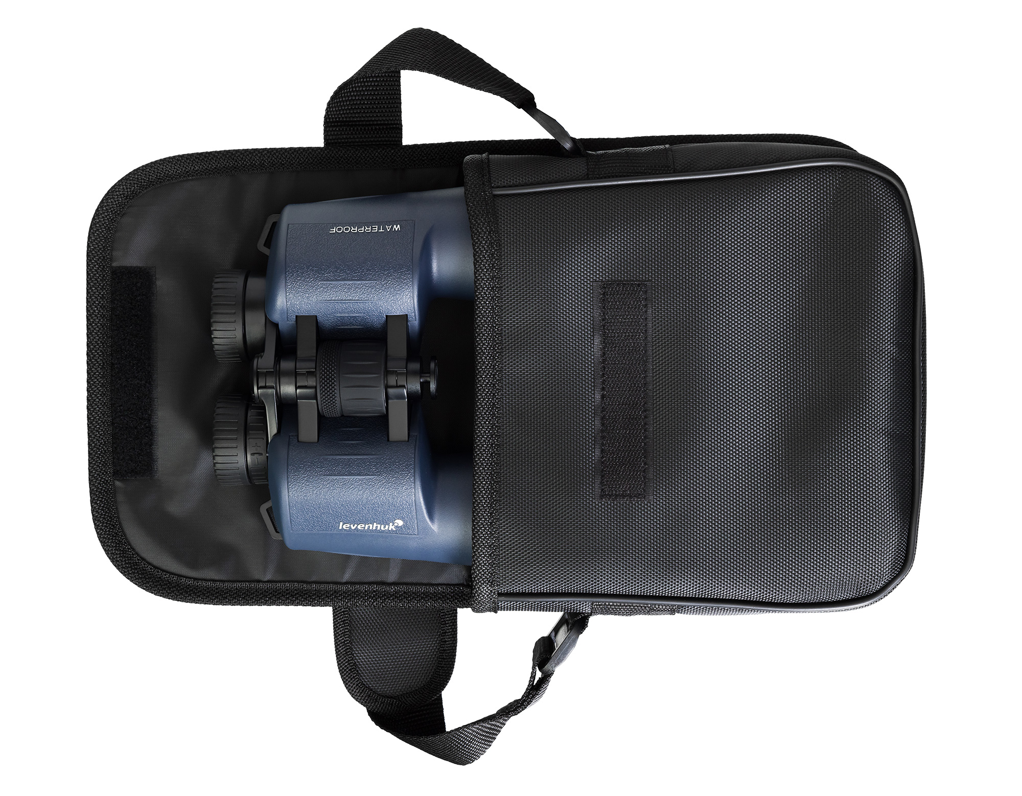 Корпус бинокля выполнен из прочного дюраля – металлического сплава, который придает прибору легкость и долговечность. В случае необходимости, прибор можно установить на штатив, для этого требуется дополнительный адаптер. В комплект входят ремень для ношения, защитные крышки для объективов и окуляров, салфетка для чистки оптики и чехол для безопасного хранения и транспортировки.