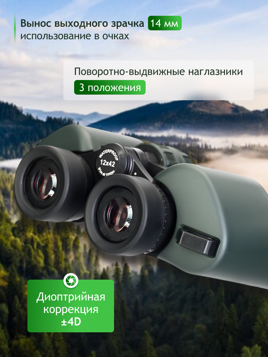• Классический полевой бинокль 12x, призмы Porro