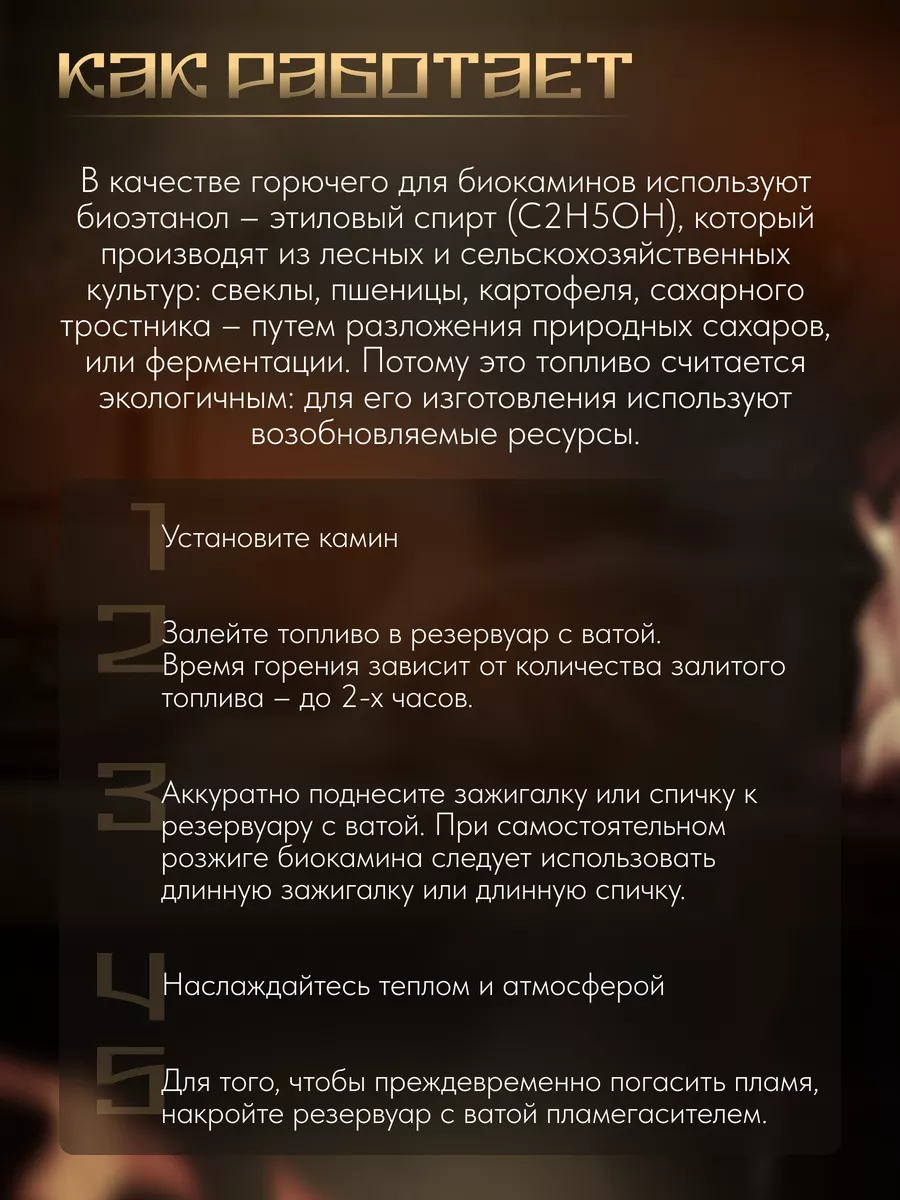 *Заполнять камин топливной жидкостью можно только когда огонь потушен! Не оставляйте маленьких детей без присмотра возле горящего биокамина!