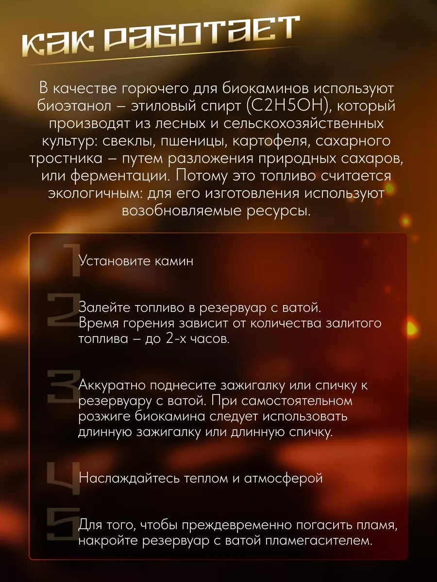 *Заполнять камин топливной жидкостью можно только когда огонь потушен! Не оставляйте маленьких детей без присмотра возле горящего биокамина!