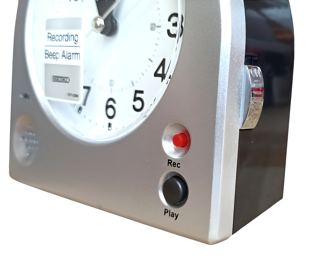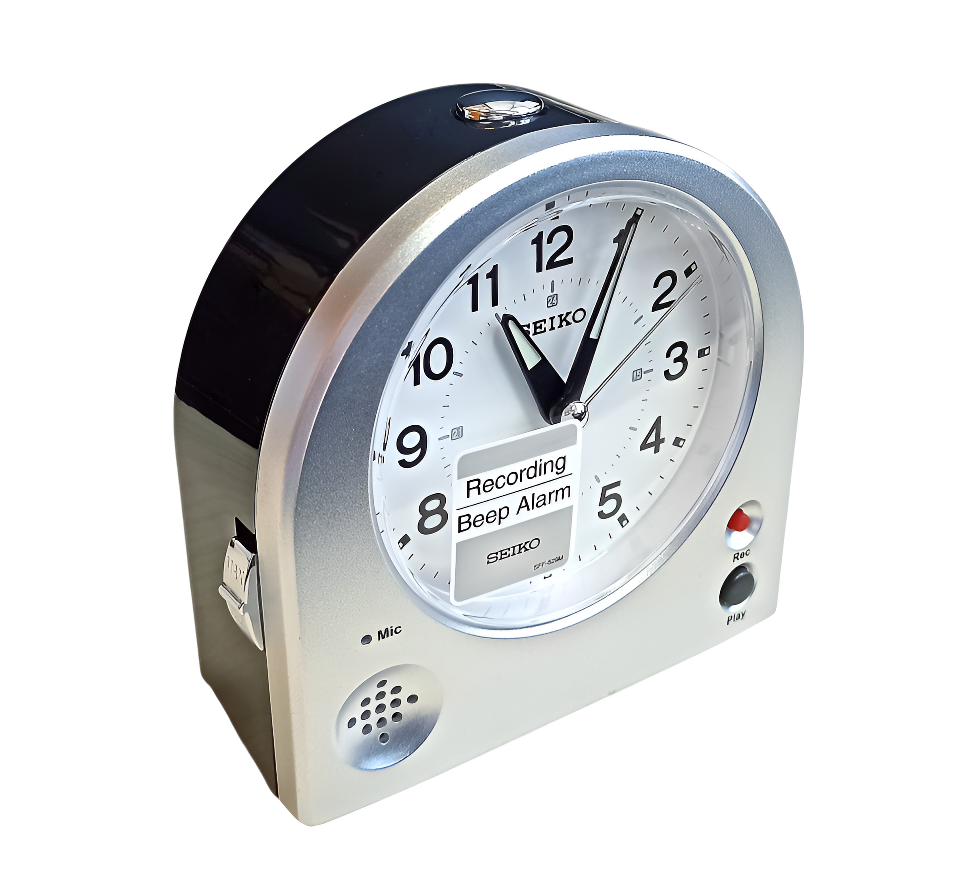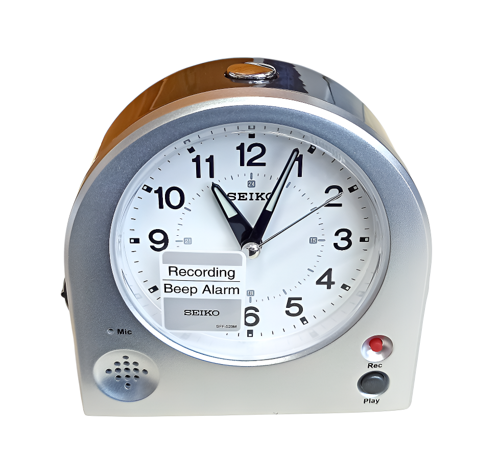 Будильник с функцией записи вашего собственного звонка длительностью ло 20-ти секунд.
