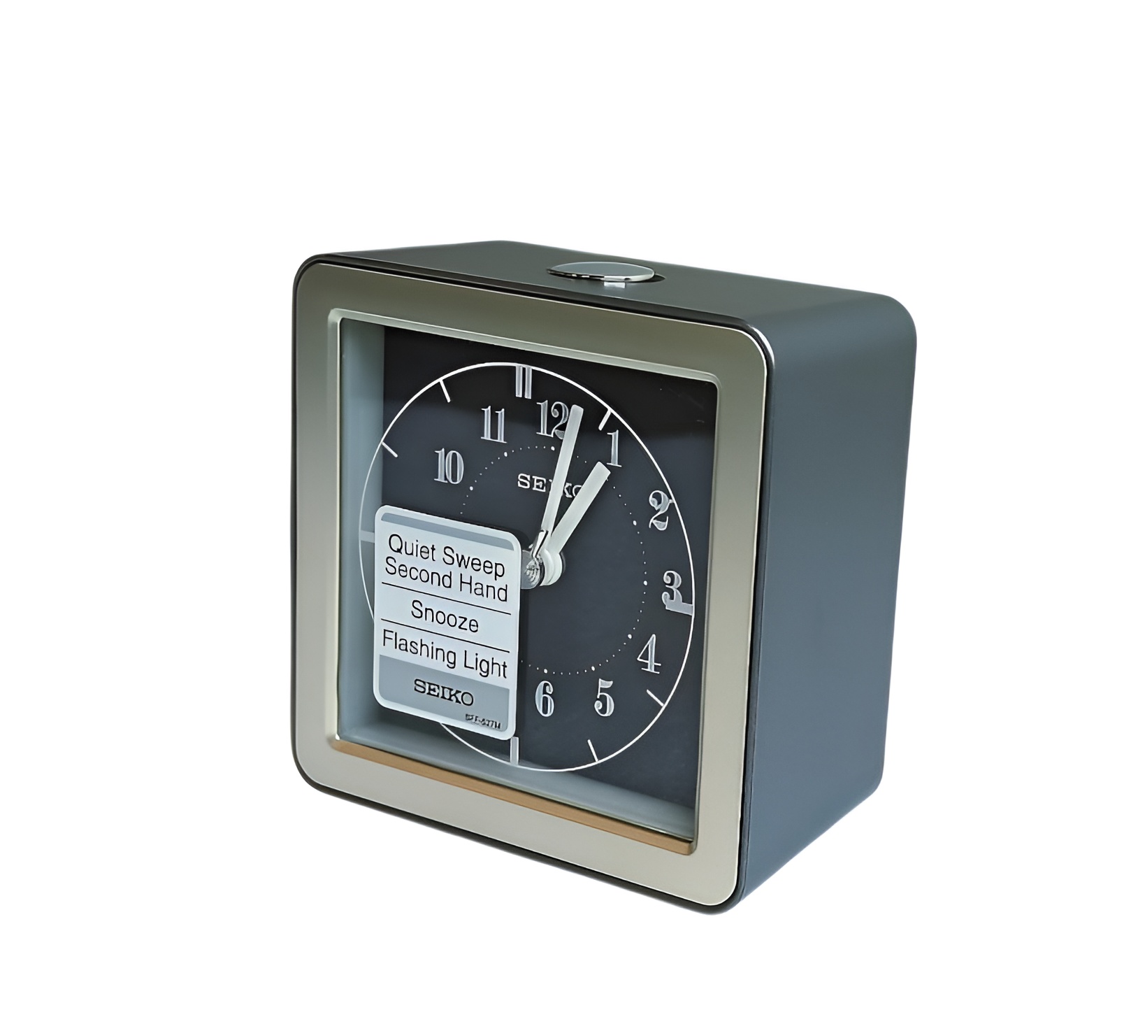 Кварцевый будильник, корпус сделан из пластика, цвет серый,плавный ход секундной стрелки, светодиодная подсветка во время срабатывания сигнала будильника, подсветка по контуру циферблата, повтор сигнала , размер 8,3 х 8,1 х 4 см, батарейки:1 шт. АА в комплекте