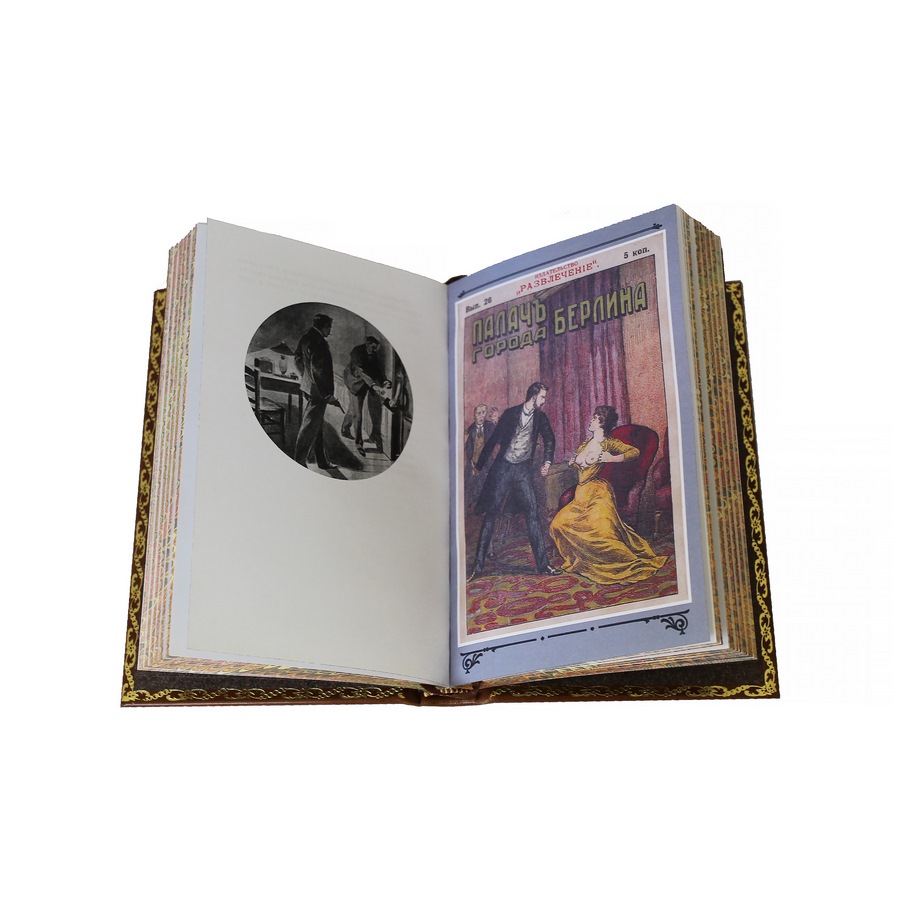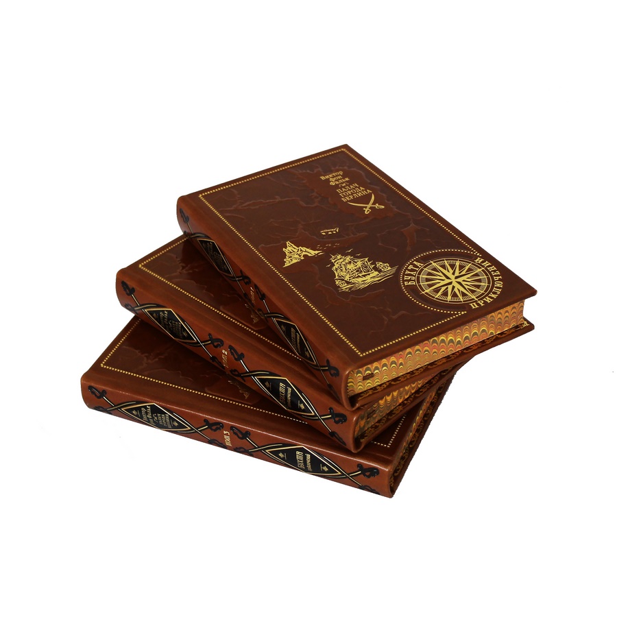 Каждая книга данной серии представлена в цельнокожаном переплете ручной работы, включает в своем дизайне сочетание блинтового, золотого и цветного тиснения, выполненных на высококачественной натуральной коже.