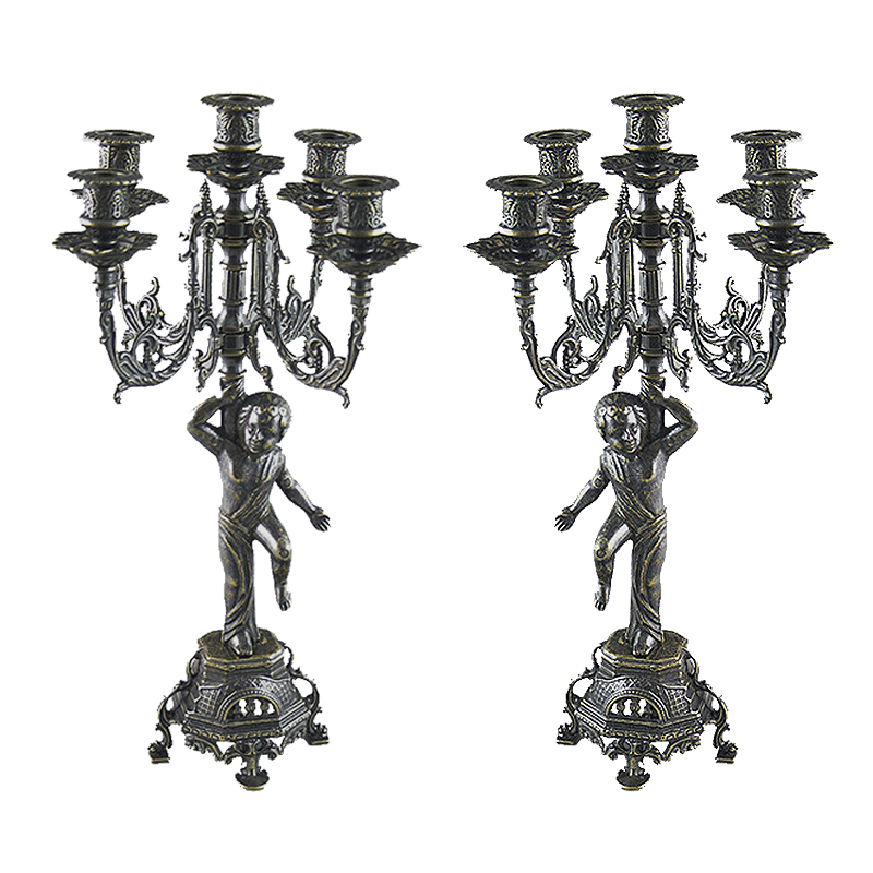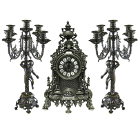 Часы каминные "Барокко" и 2 канделябра "Купидон" на 5 свечей, антик