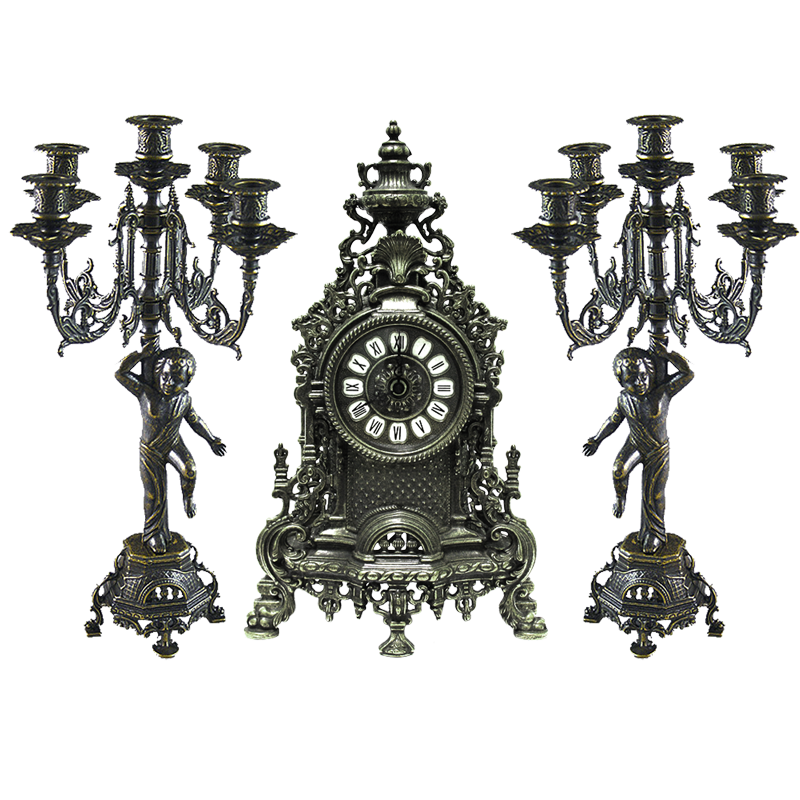 Каминные часы и два канделябра на 5 свечей (цвет: антик)