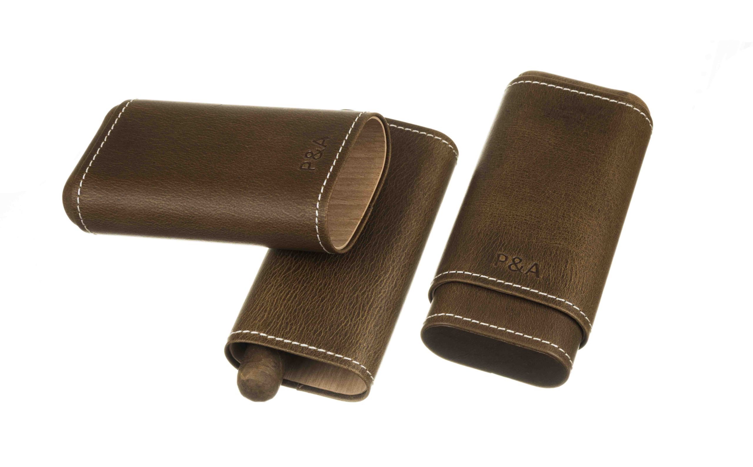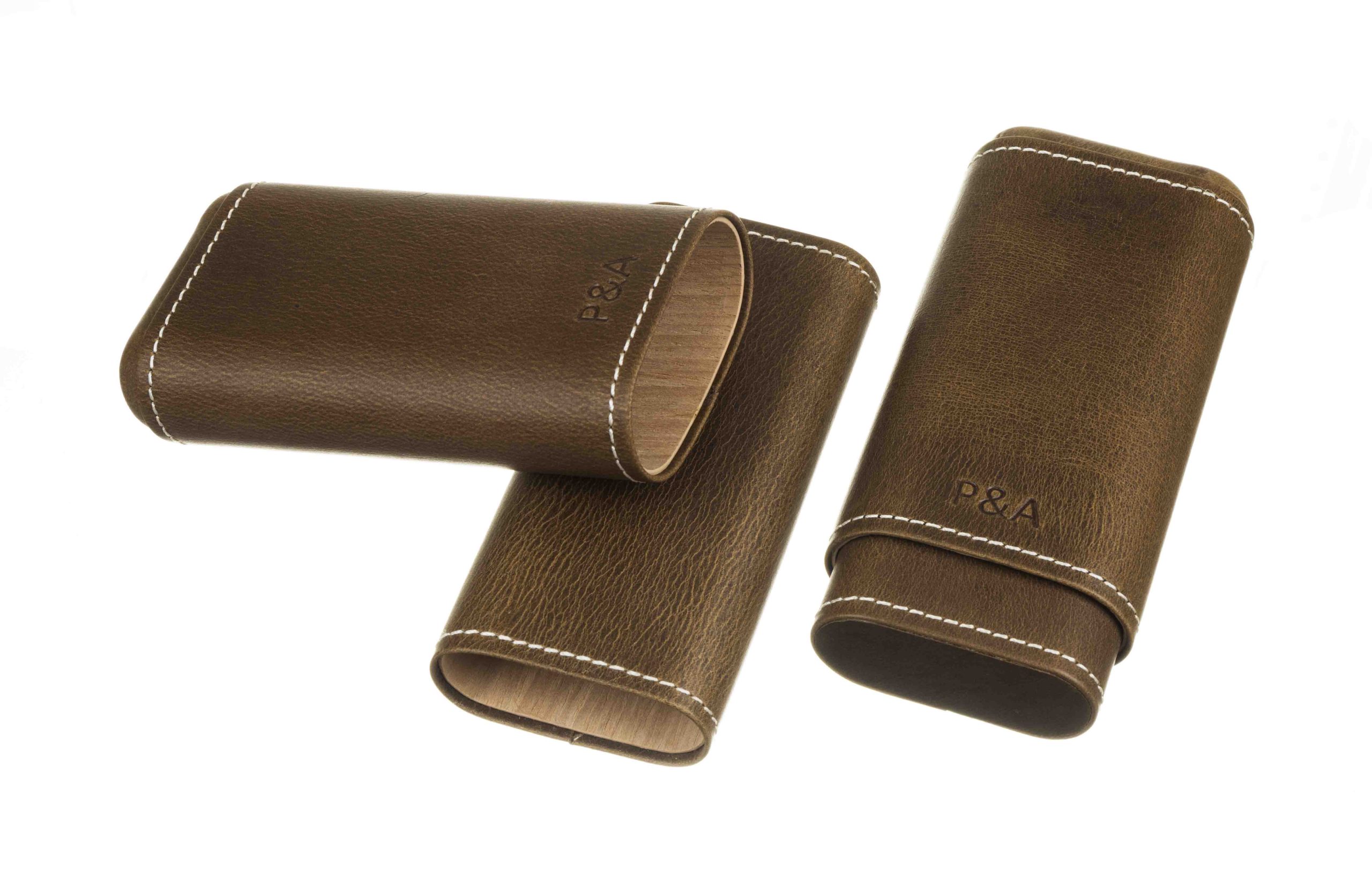 Чехол P&A на 3 сигары Черчилль, натуральная кожа и кедр