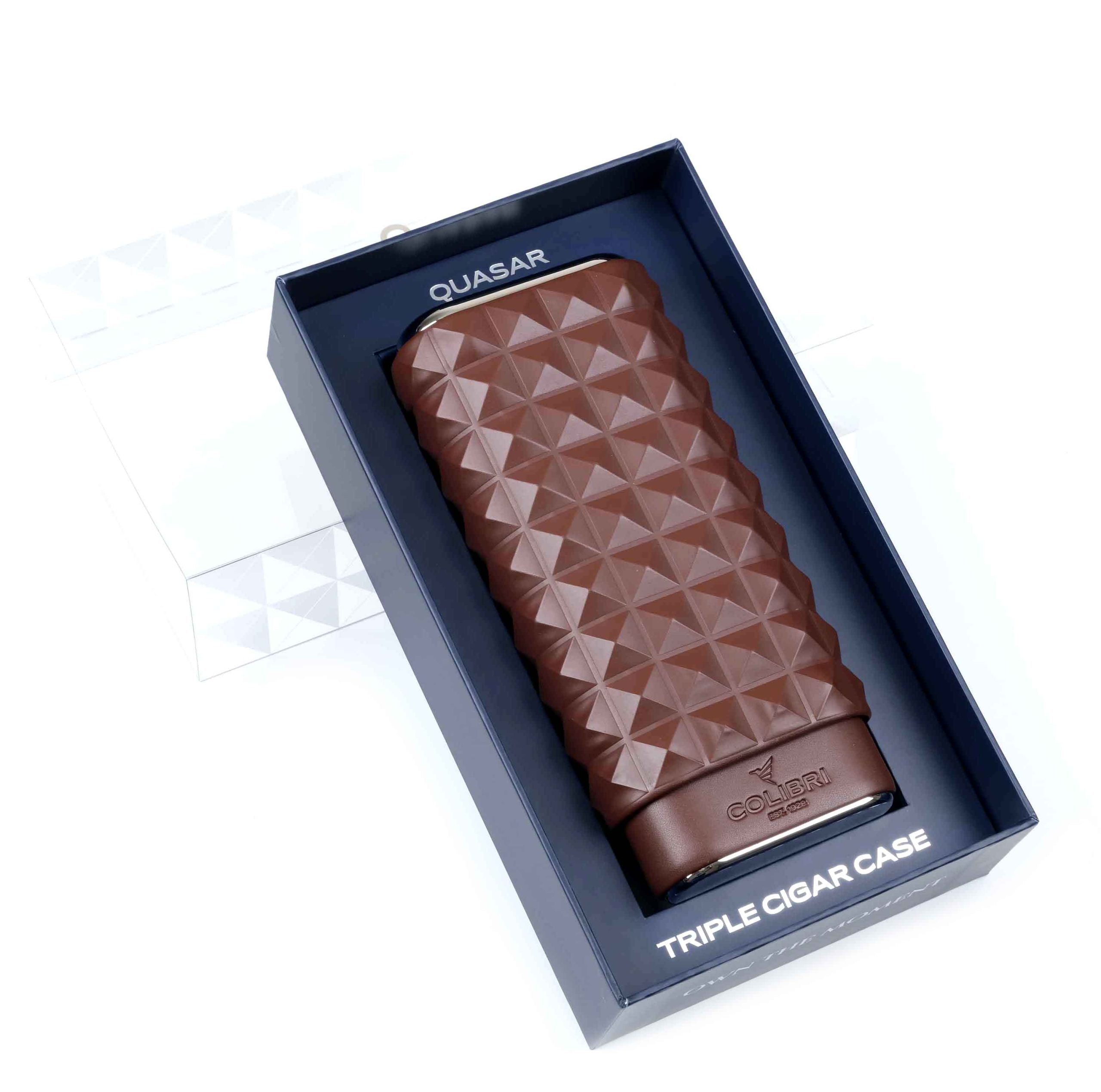 Роскошный чехол на 3 сигары из серии Colibri Quasar в жестком корпусе из кедра и натуральной телячьей кожи.