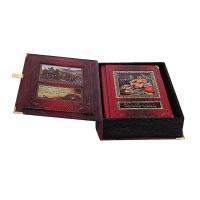 Цельнокожаный переплёт ручной работы, украшен иллюстрированной вставкой из цветного металла.
