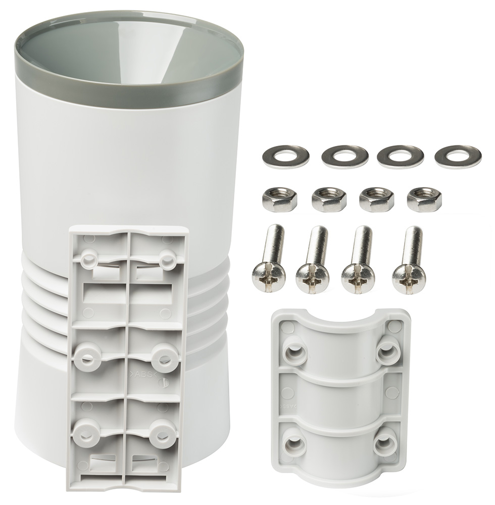 Датчик дождя рекомендуется крепить к стене при помощи комплектного монтажного набора. Датчик передает данные по радиоканалу, радиус действия которого составляет 150 метров. Основной модуль тоже можно вешать на стену или же ставить на полку или тумбочку. Для работы основного модуля и датчика используются батарейки (приобретаются отдельно).