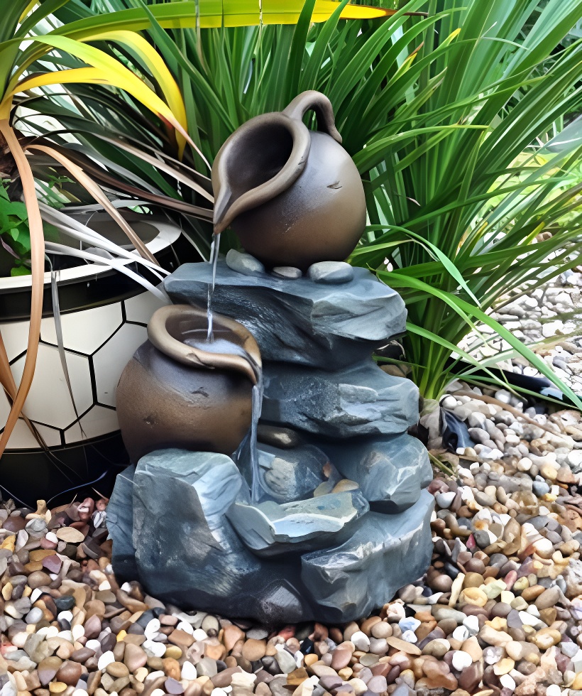 - Звуки каскадной воды: фонтан издает успокаивающие звуки и атмосферу в вашем саду, патио, веранде или во дворе.