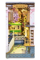 Красивый книжный уголок Sakura Densya - это декоративная вставка для книжной полки в виде весенней улицы в Токио, которую вы можете собрать своими руками.
