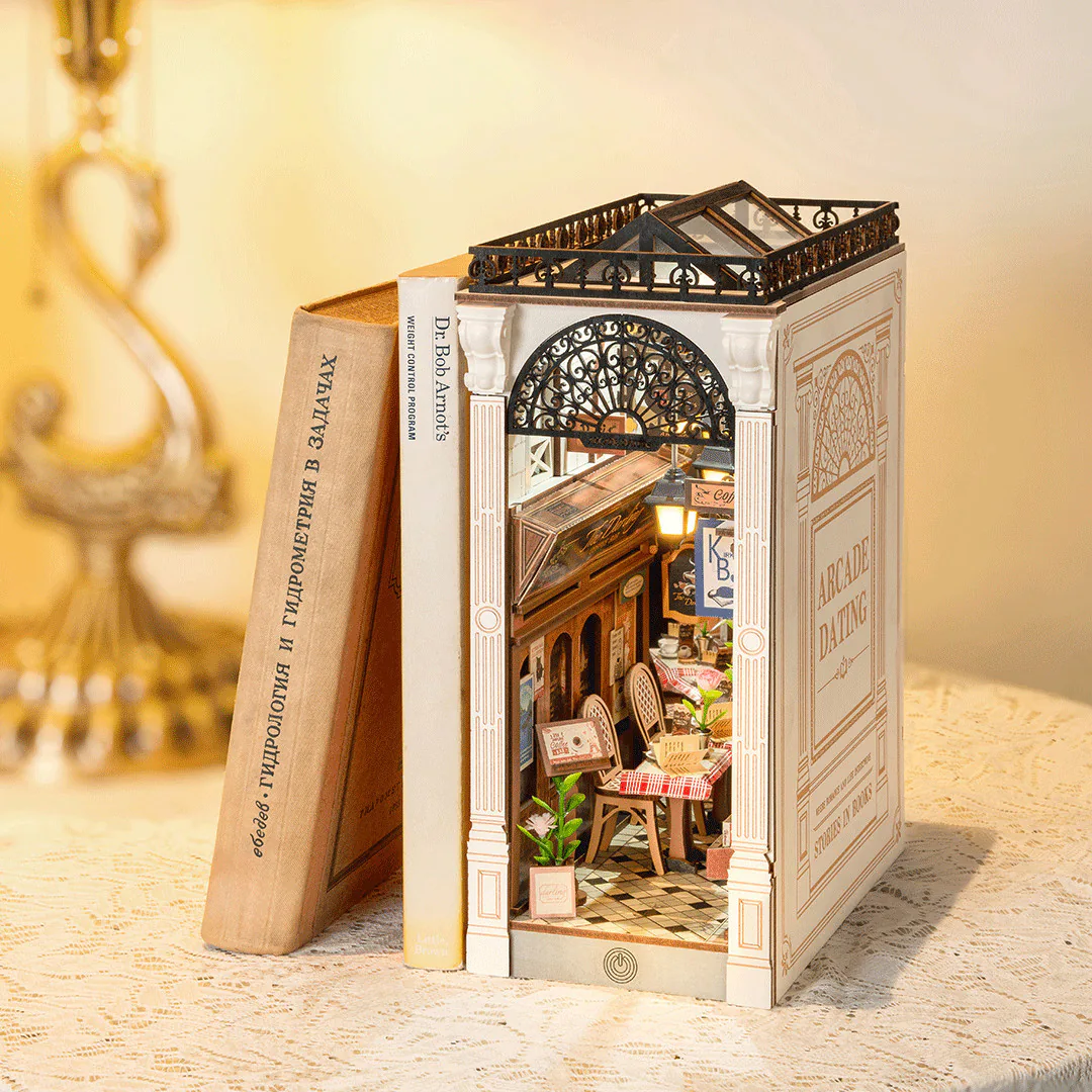 Превратите свою книжную полку в сказочный, романтический мир с помощью этой игры «Аркадные свидания». Этот книжный уголок — очаровательная миниатюра, идеально подходящая для романтической встречи, как в книгах из вашей библиотеки.