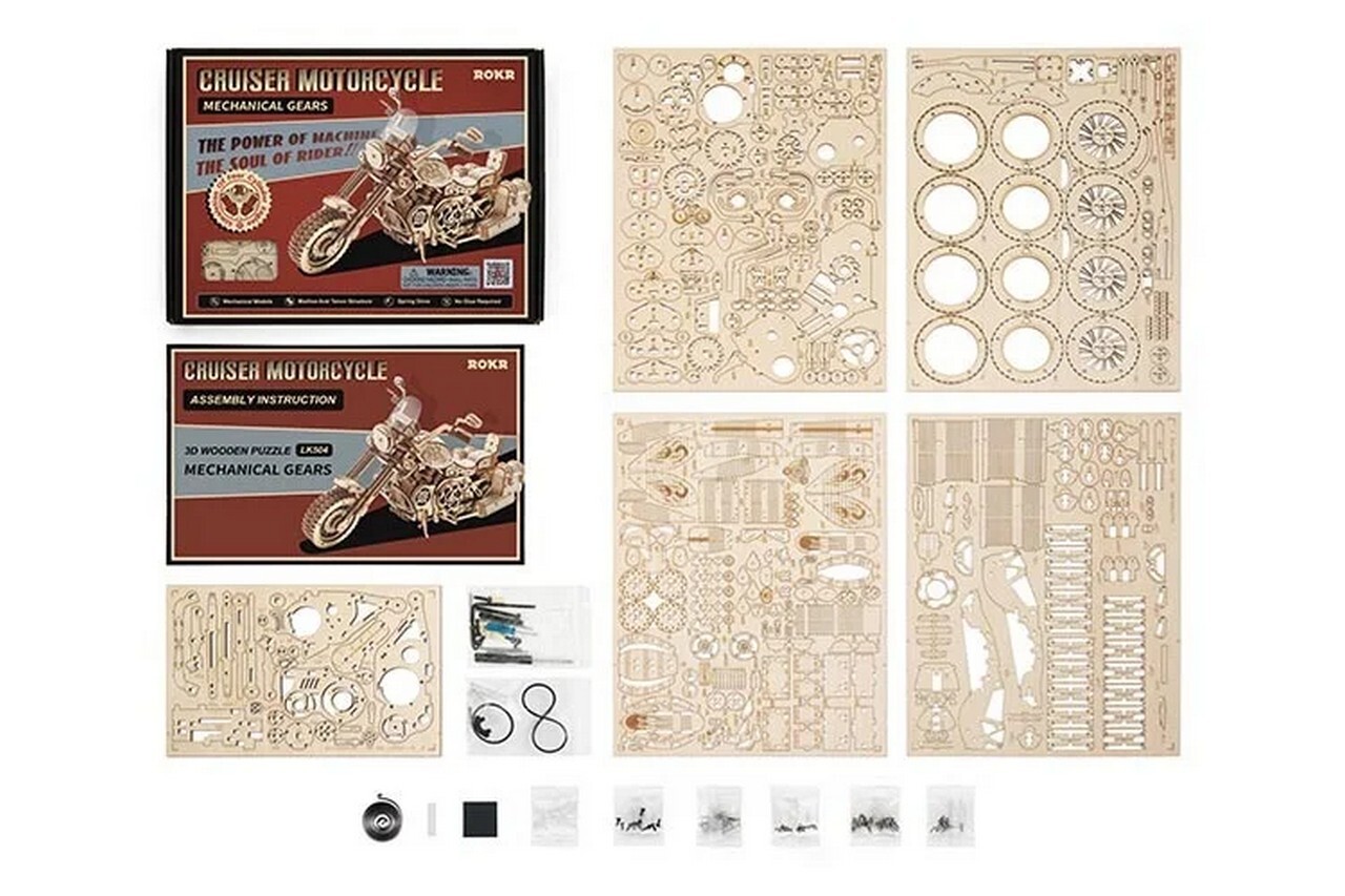 Механический деревянный конструктор Robotime - Круизный мотоцикл (Cruiser Motorcycle)