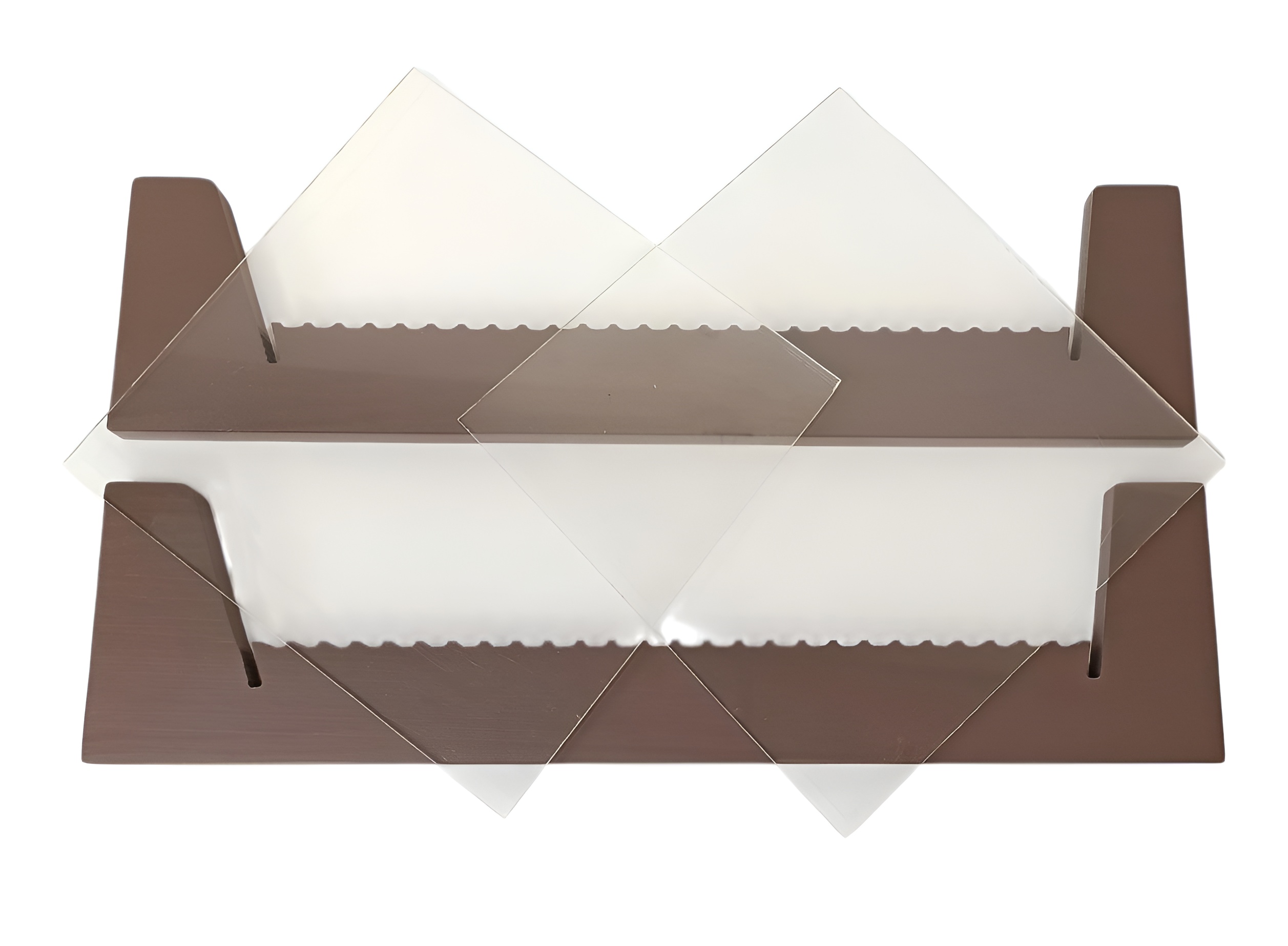 Чтобы собрать, нужно всего лишь освободить с двух сторон от защитной пленки пластины из оргстекла и вставить их в специальные прорези на базе.