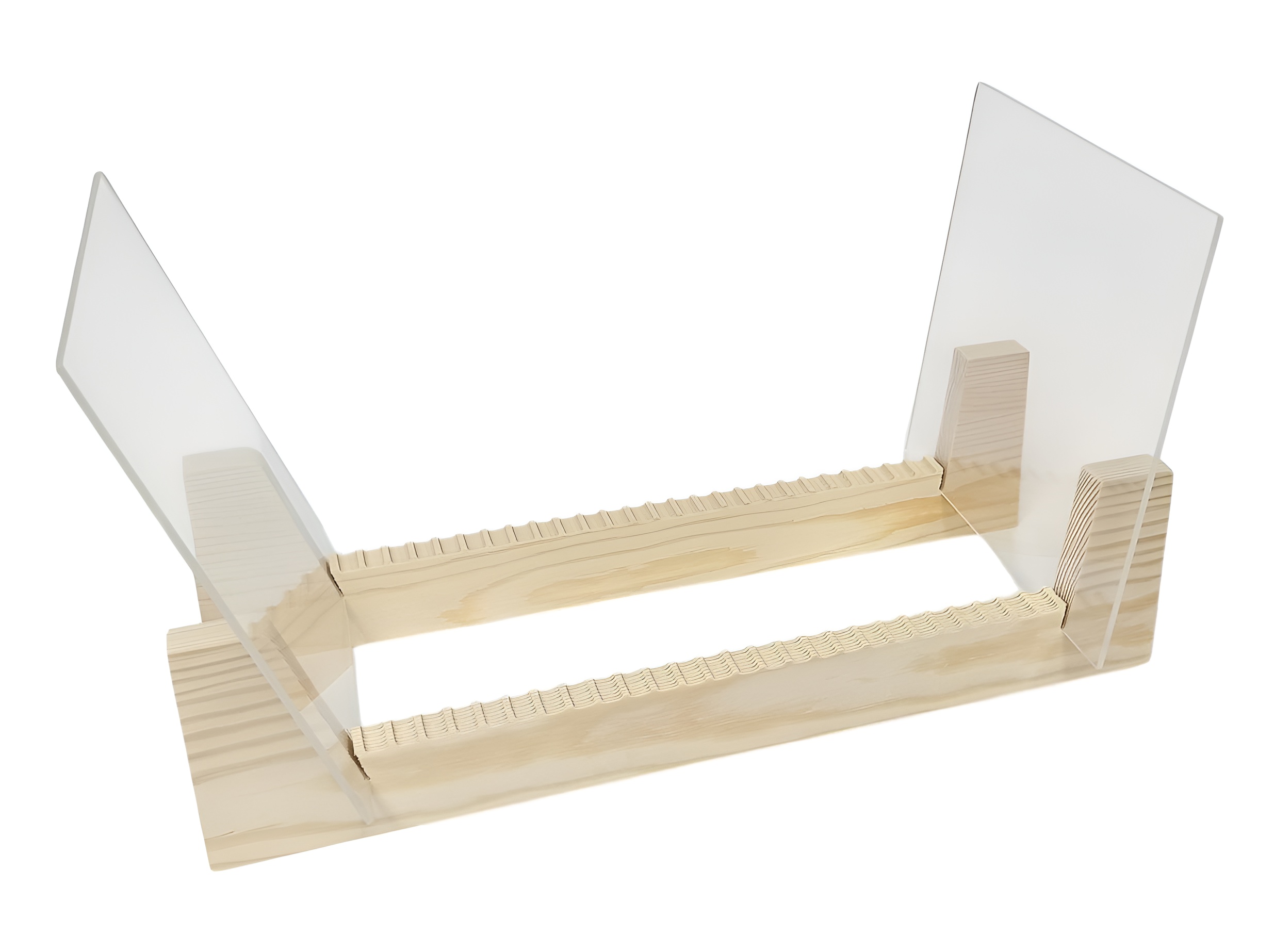 Чтобы собрать, нужно всего лишь освободить с двух сторон от защитной пленки пластины из оргстекла и вставить их в специальные прорези на базе.