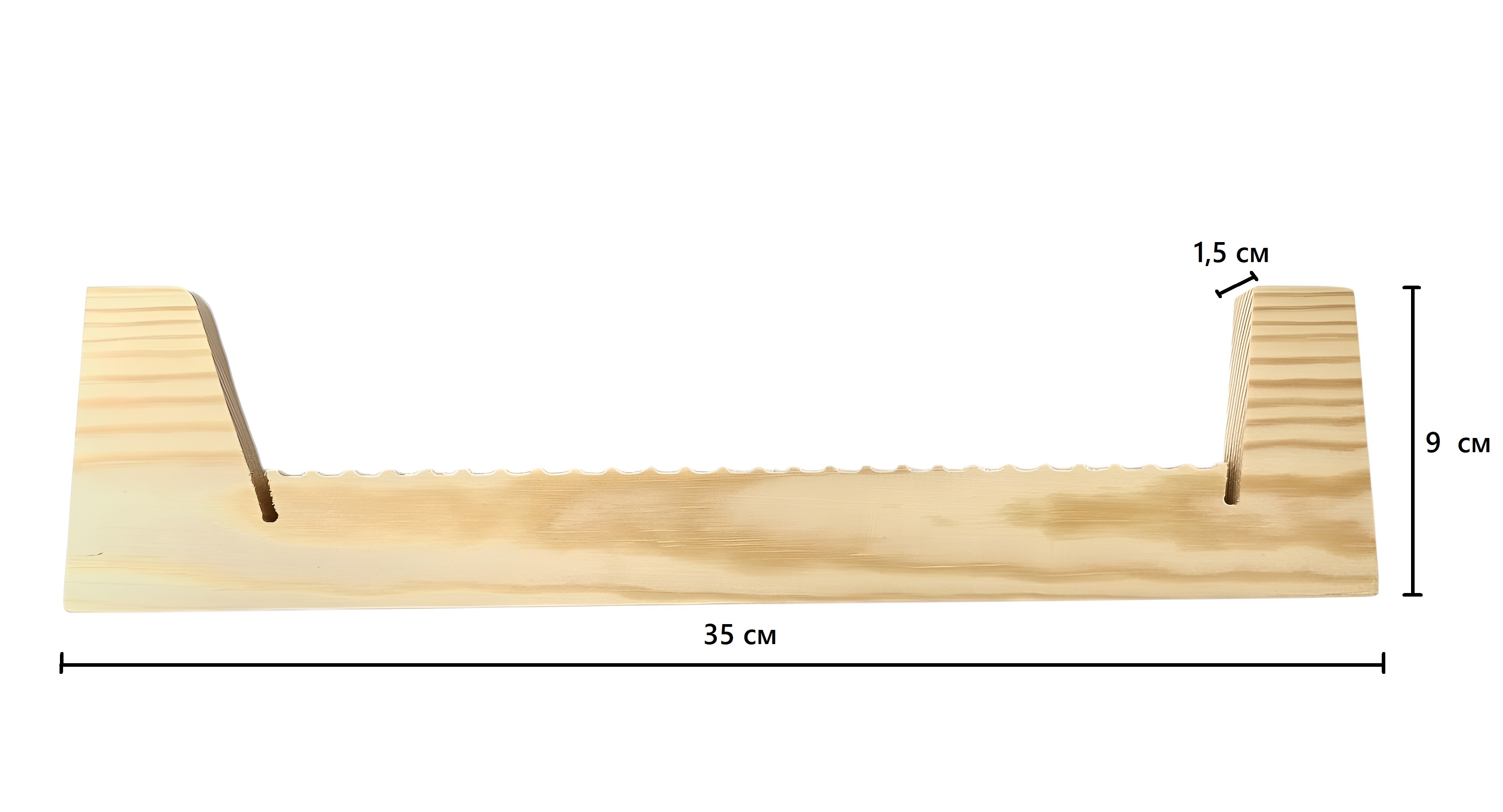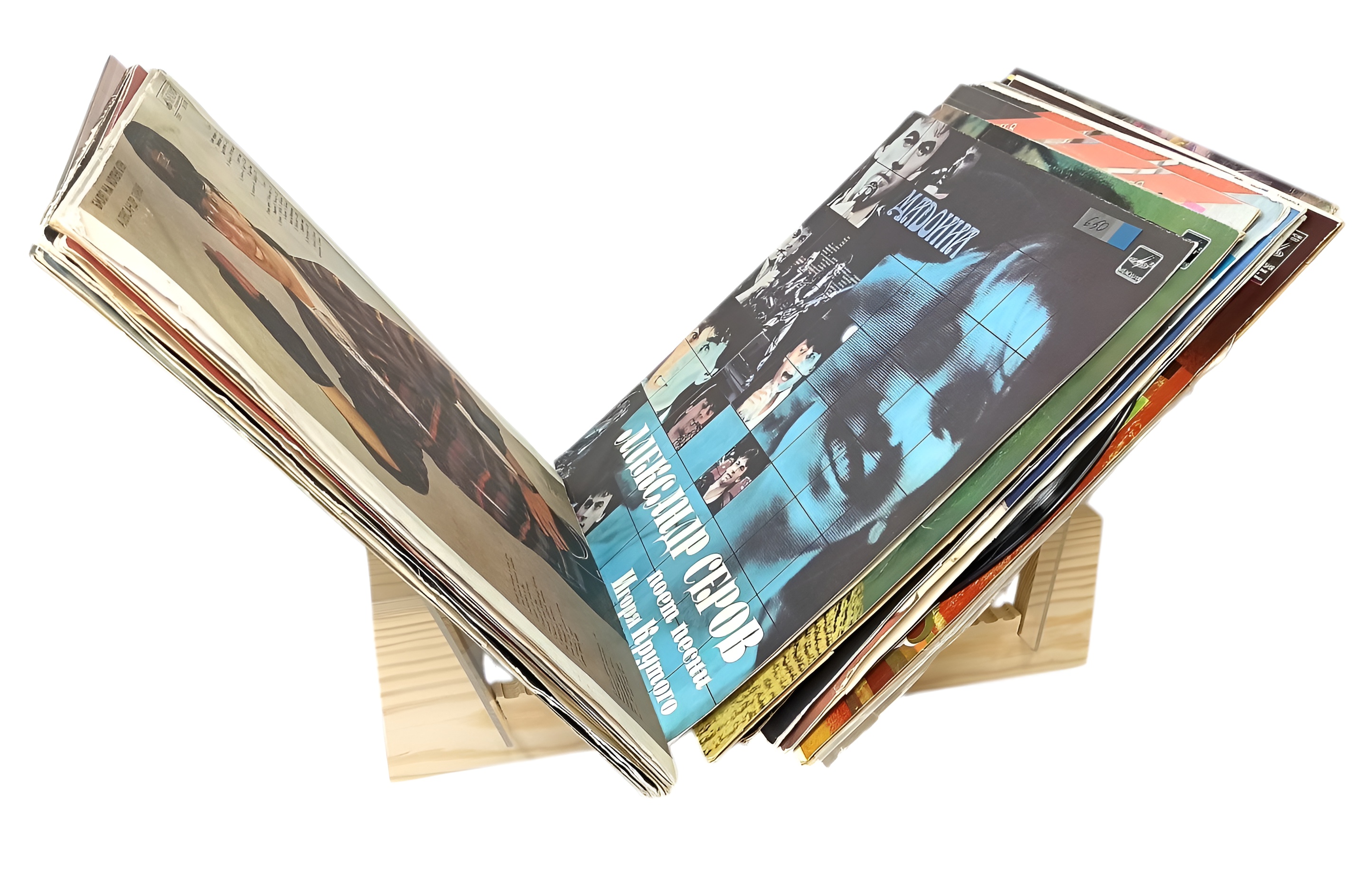 База из натурального дерева (сосна) ничем не покрыта, это даёт свободу полёту вашей фантазии, чтобы подстроить держатель для виниловых пластинок под ваш интерьер.