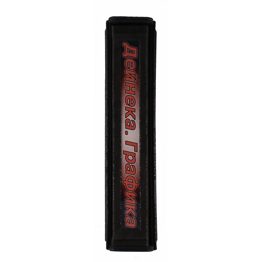 Цельнокожаный переплёт ручной работы, украшен иллюстрированной вставкой из цветного металла.