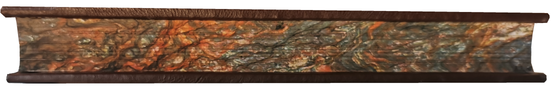Цельнокожаный переплёт ручной работы, украшен вставкой из цветного металла с золотой печатью.Блинтовое и золотое тиснение.