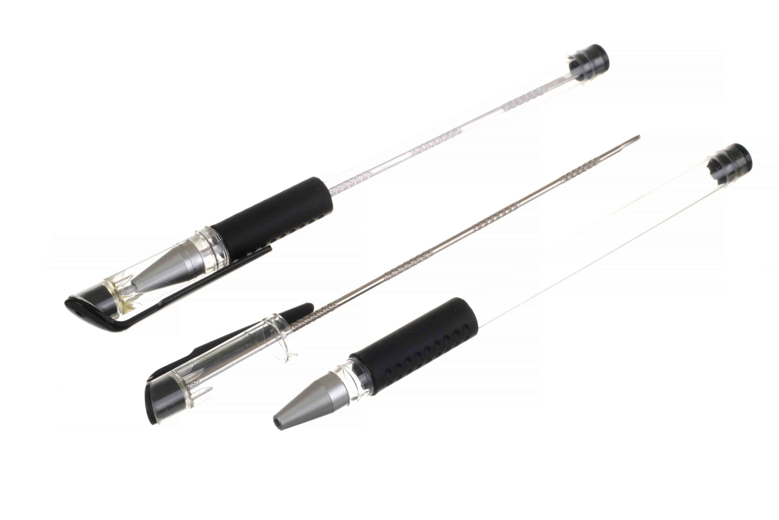 Дорожный пробойник-шило для сигар от известного немецкого табачного бренда Passatore в виде шариковой ручки. Оригинальный форм-фактор позволяет брать его с собой в поездку на любом виде транспорта. Изготовлен из металла в корпусе из пластика.
