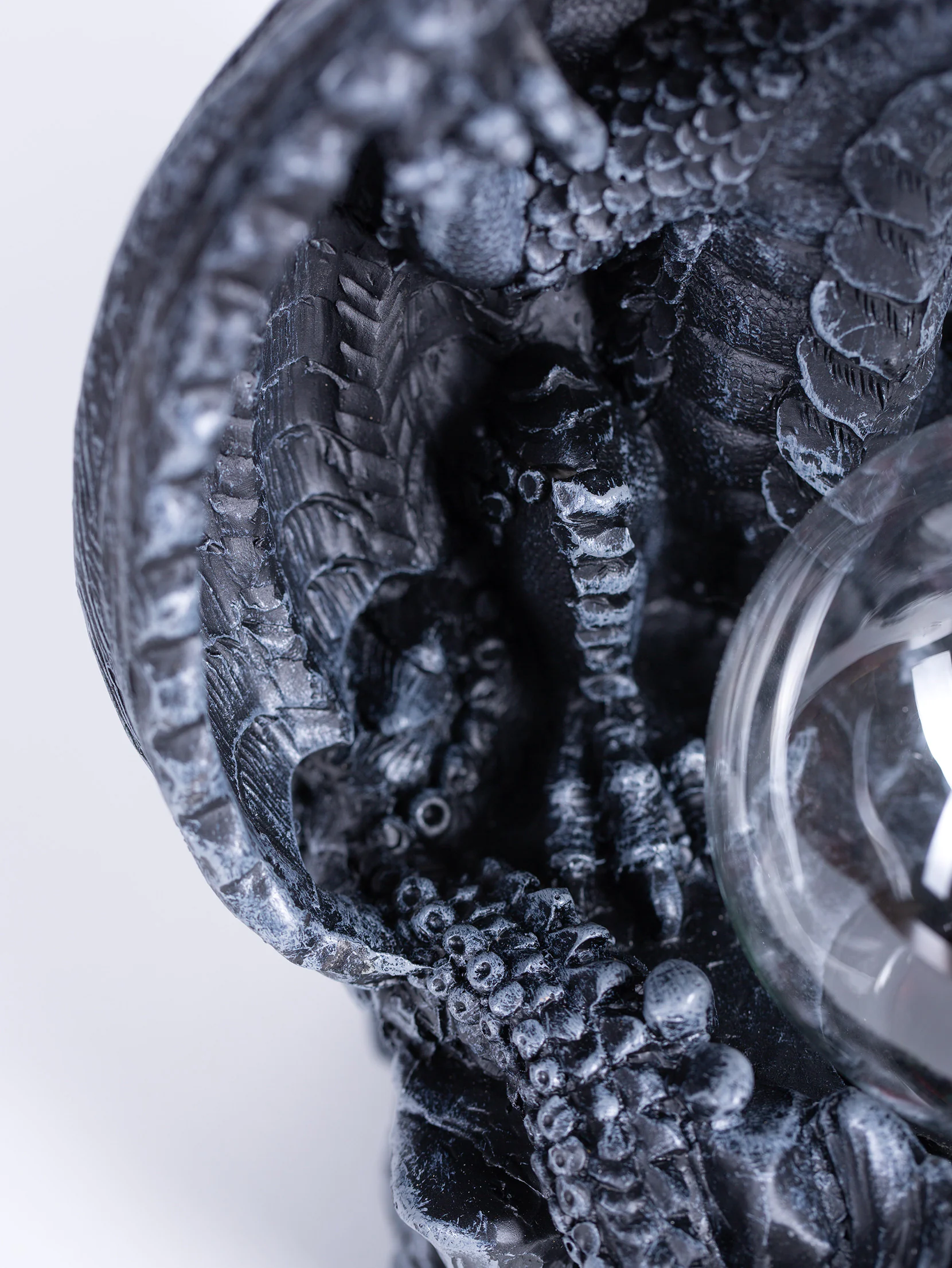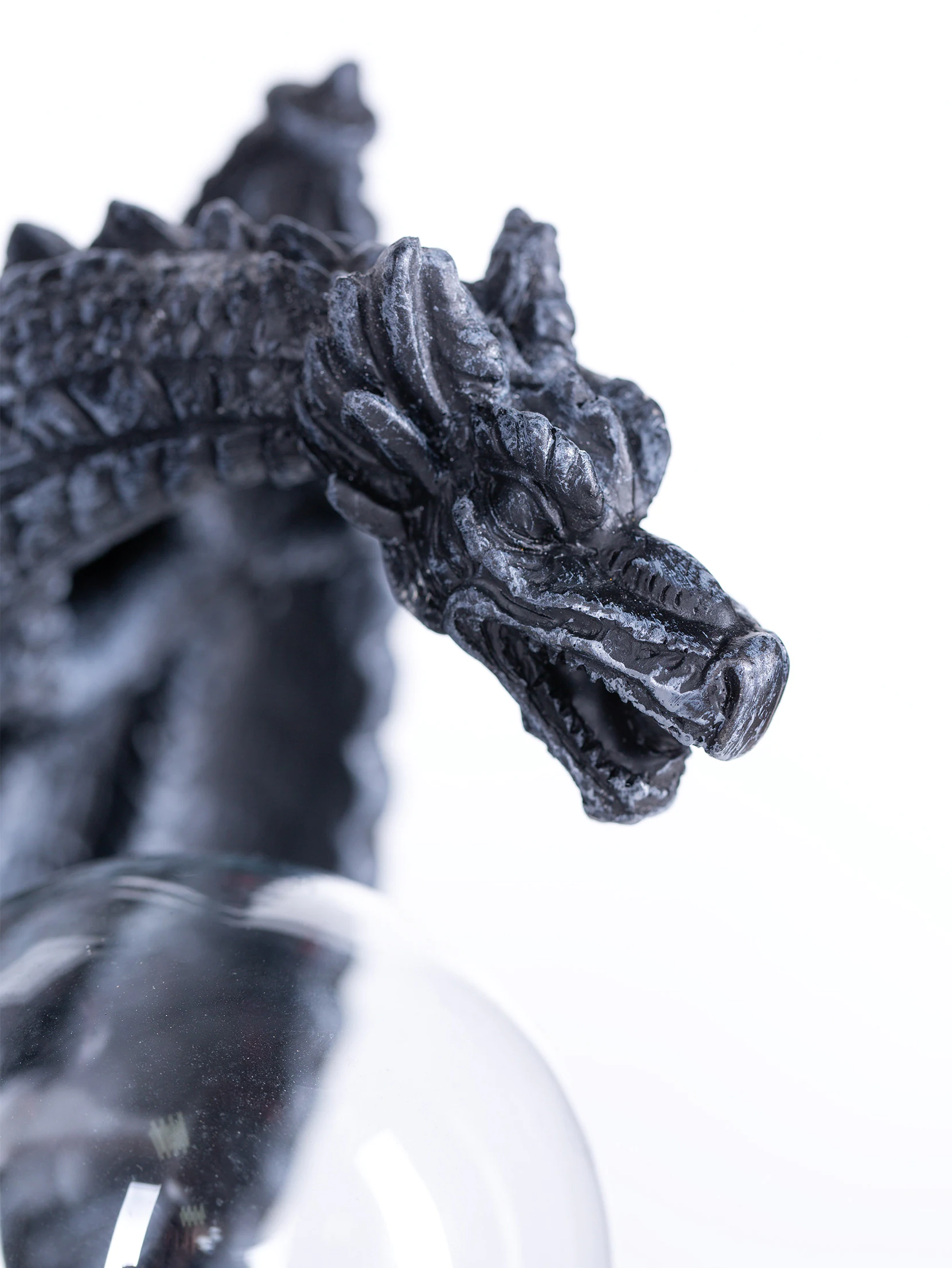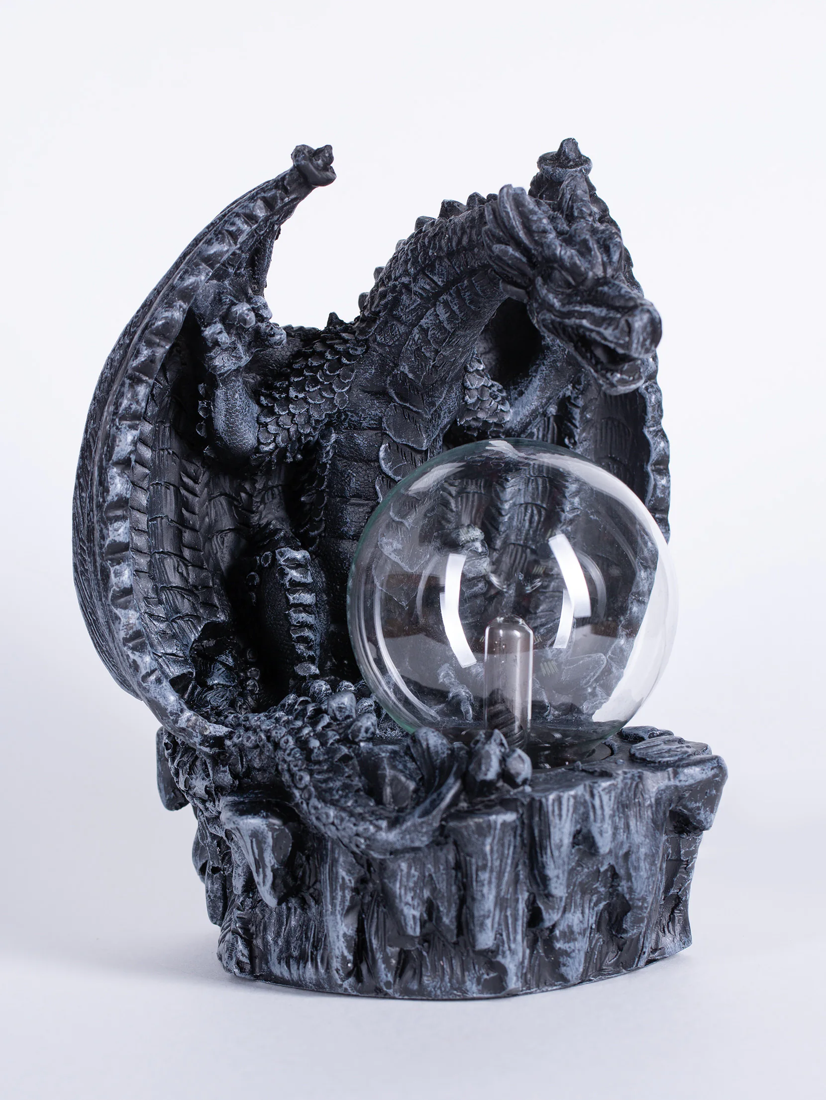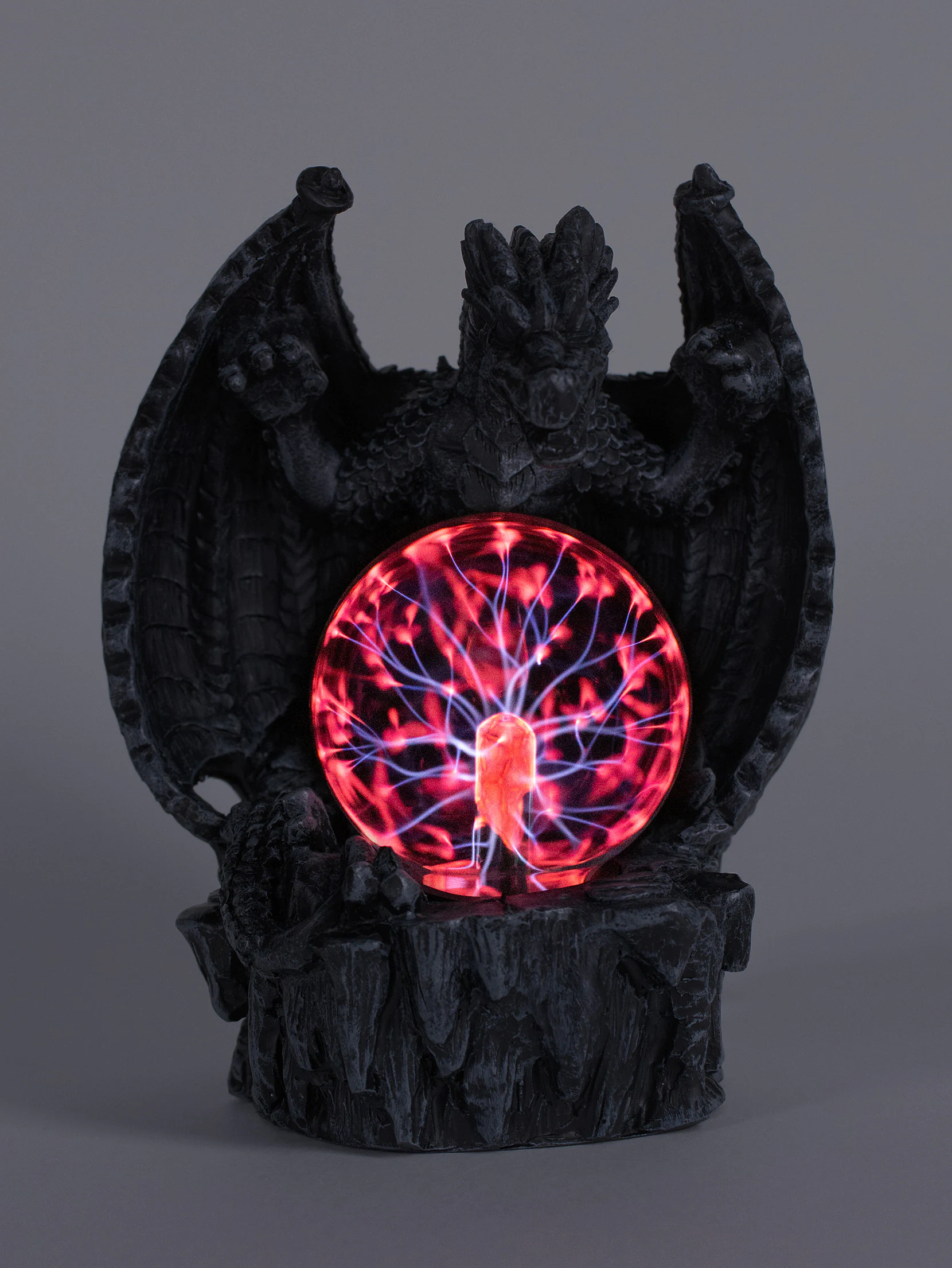 Данный плазменный шар ничем не отличается от классических моделей, кроме как своей необычной декоративной подставкой в виде захватывающего одноглавого дракона.