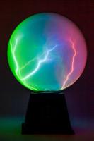Включив электрический шар в розетку, увидите, как он тут же начнет испускать огромное количество тоненьких молний, имеющих свое начало внизу шара и заканчивающихся у его стенок. При прикосновении к поверхности электрические разряды притягиваются к пальцу.