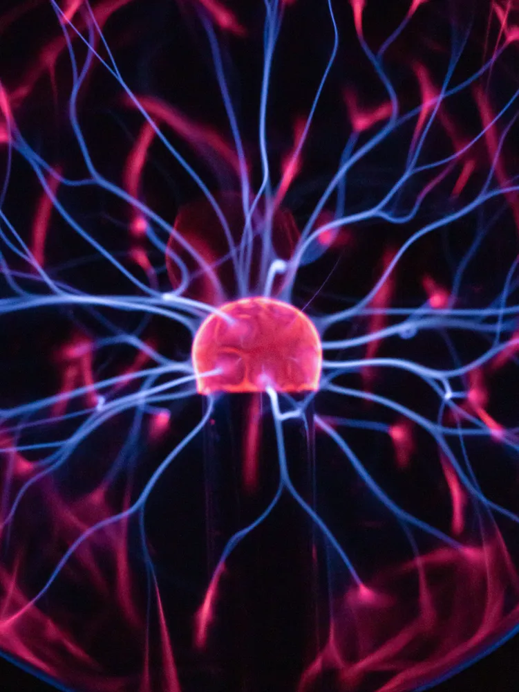 Включив электрический шар в розетку, увидите, как он тут же начнет испускать огромное количество тоненьких молний, имеющих свое начало в центре шара и заканчивающихся у его стенок. При прикосновении к поверхности электрические разряды притягиваются к пальцу.
