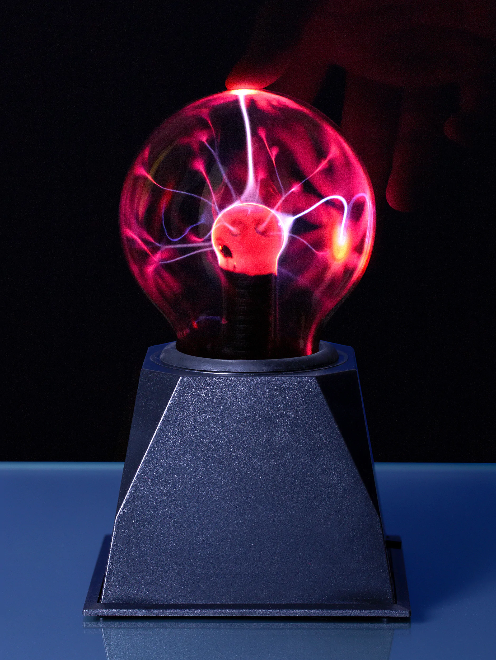 Включив электрический шар в розетку, увидите, как он тут же начнет испускать огромное количество тоненьких молний, имеющих свое начало в центре шара и заканчивающихся у его стенок.