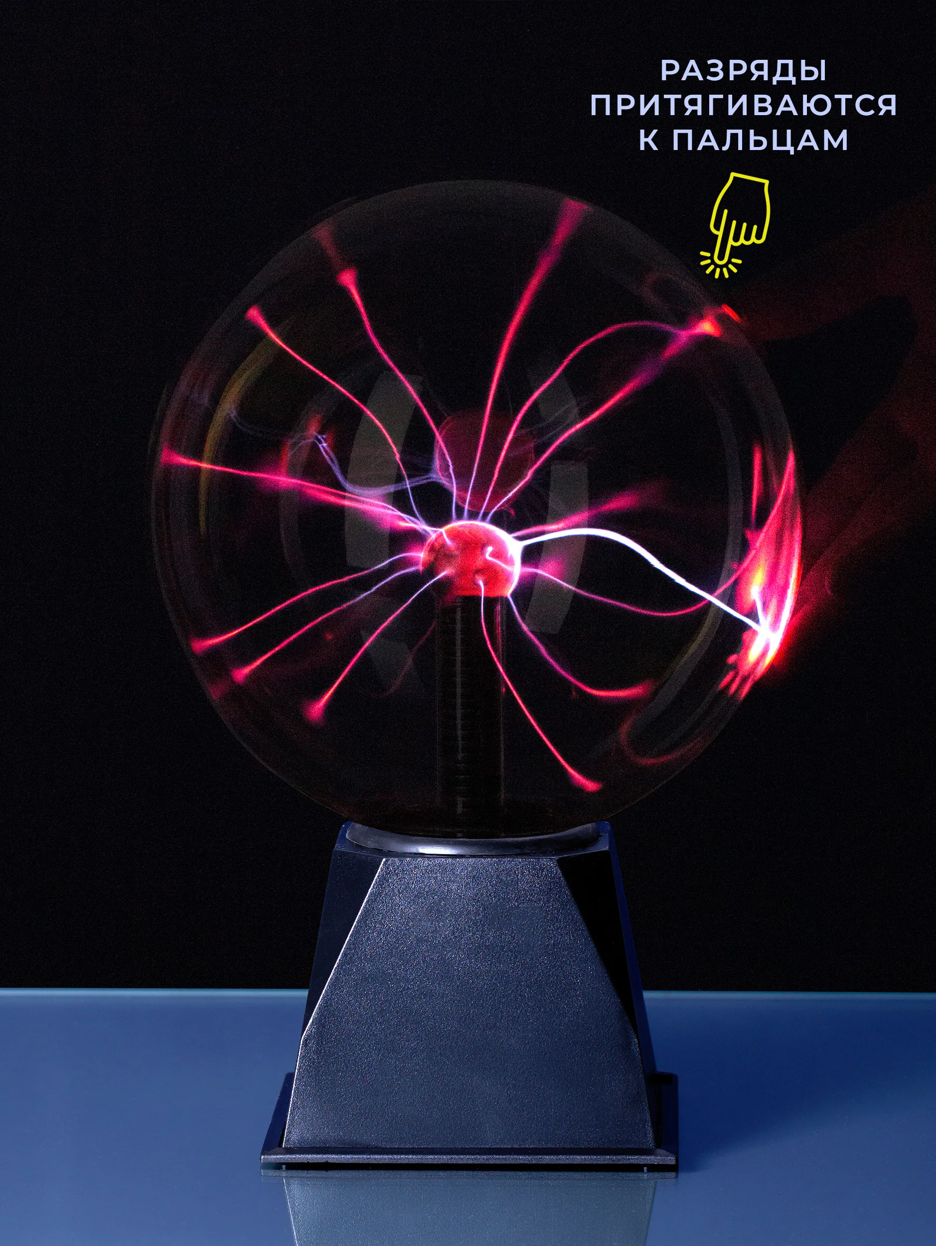 При прикосновении к поверхности электрические разряды притягиваются к пальцу.