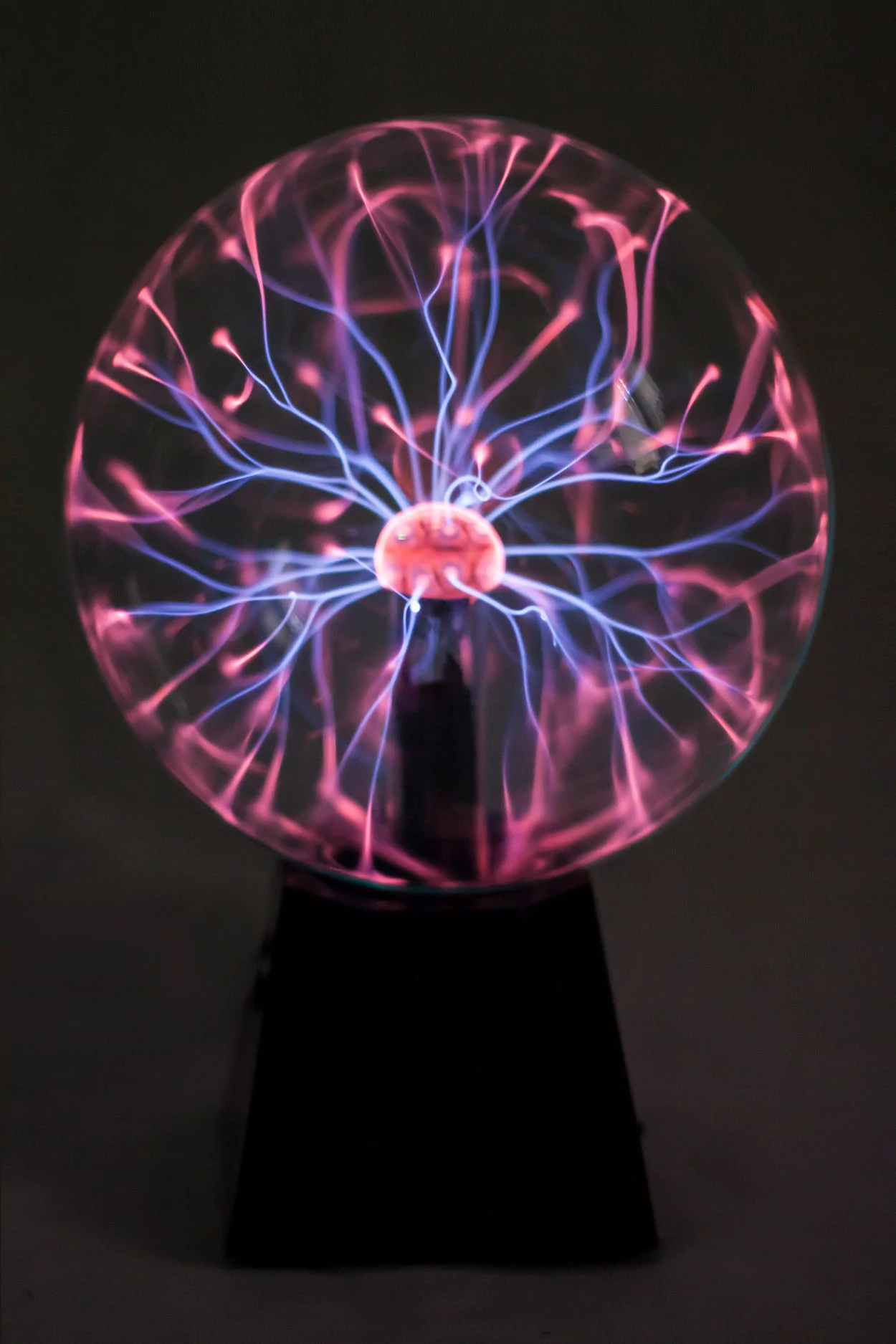 Включив электрический шар в розетку, увидите, как он тут же начнет испускать огромное количество тоненьких молний, имеющих свое начало в центре шара и заканчивающихся у его стенок.