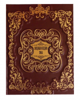 Цельнокожаный переплёт ручной работы, украшен вставкой из цветного металла с золотой печатью.Блинтовое и золотое тиснение.