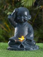 Перед вами изящная чёрная статуэтка, изображающая умиротворённого маленького Будду в позе лотоса.