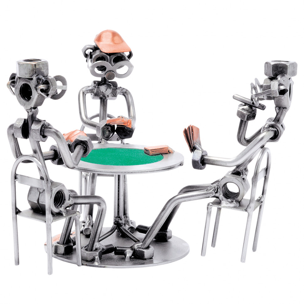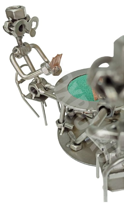 Его причудливые создания из шурупов и болтов, изображающие людей на работе и на отдыхе, узнаются из прочих по приметным очкам, которые они все носят.