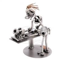 Его причудливые создания из шурупов и болтов, изображающие людей на работе и на отдыхе, узнаются из прочих по приметным очкам, которые они все носят.