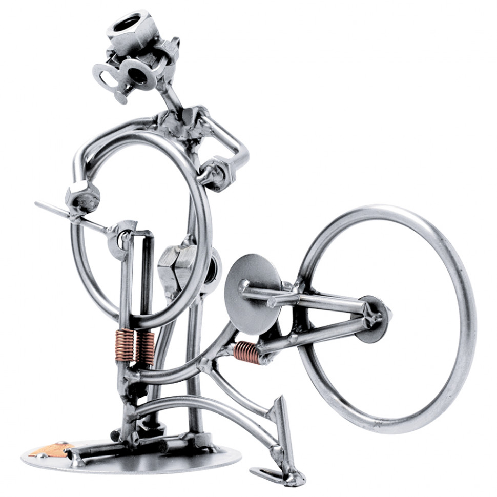 Его причудливые создания из шурупов и болтов, изображающие людей на работе и на отдыхе, узнаются из прочих по приметным очкам, которые они все носят.