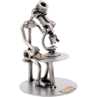 Его причудливые создания из шурупов и болтов, изображающие людей на работе и на отдыхе, узнаются из прочих по приметным очкам, которые они все носят.