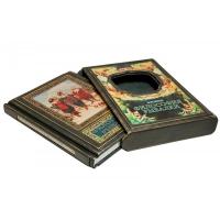 Цельнокожаный переплёт ручной работы, украшен цветной кожаной вставкойиллюстрированной вставкой из цветного металла. Обложка двухуровневая. Текст книги напечатан на мелованной бумаге и дополнен цветными иллюстрациями. Обрез оформлен в технике "Перо павлина". Ляссе из шёлковой ленты. Форзац цельный из дизайнерской бумаги. Футляр кожаный, вдохновлён дизайном книги.
