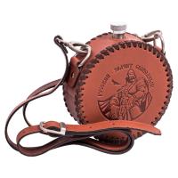 Фляга круглая 0,5 л, обтянутая натуральной кожей с ремнем, арт.541ФК-КТ2